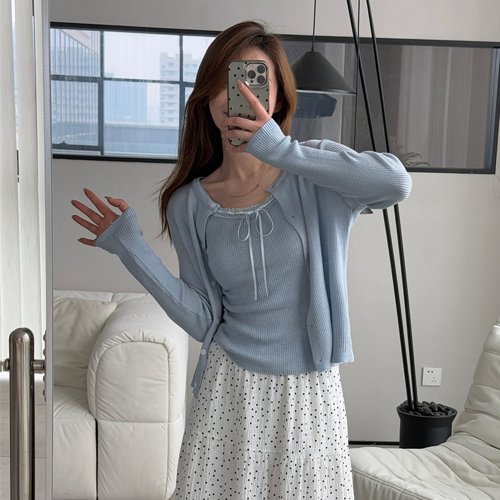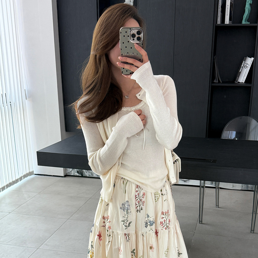 BY11863# momo大姐姐蕾丝针织衫打底衫女显瘦内搭长袖小众设计感毛衣小上衣 服裝批發女裝批發服飾貨源