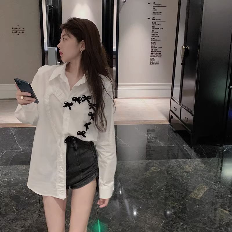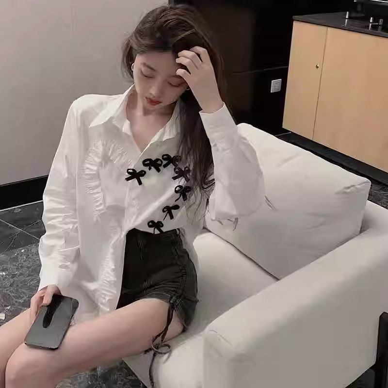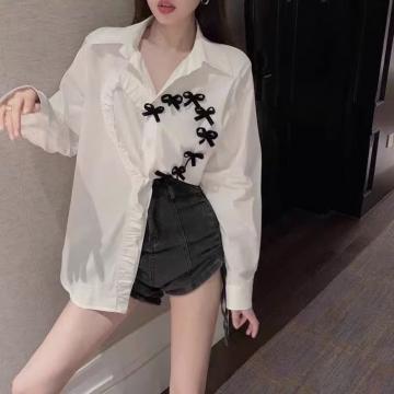 BY11872# 白色长袖衬衫女装春秋季设计感小众衬衣新款法式气质别致上衣 服裝批發女裝批發服飾貨源