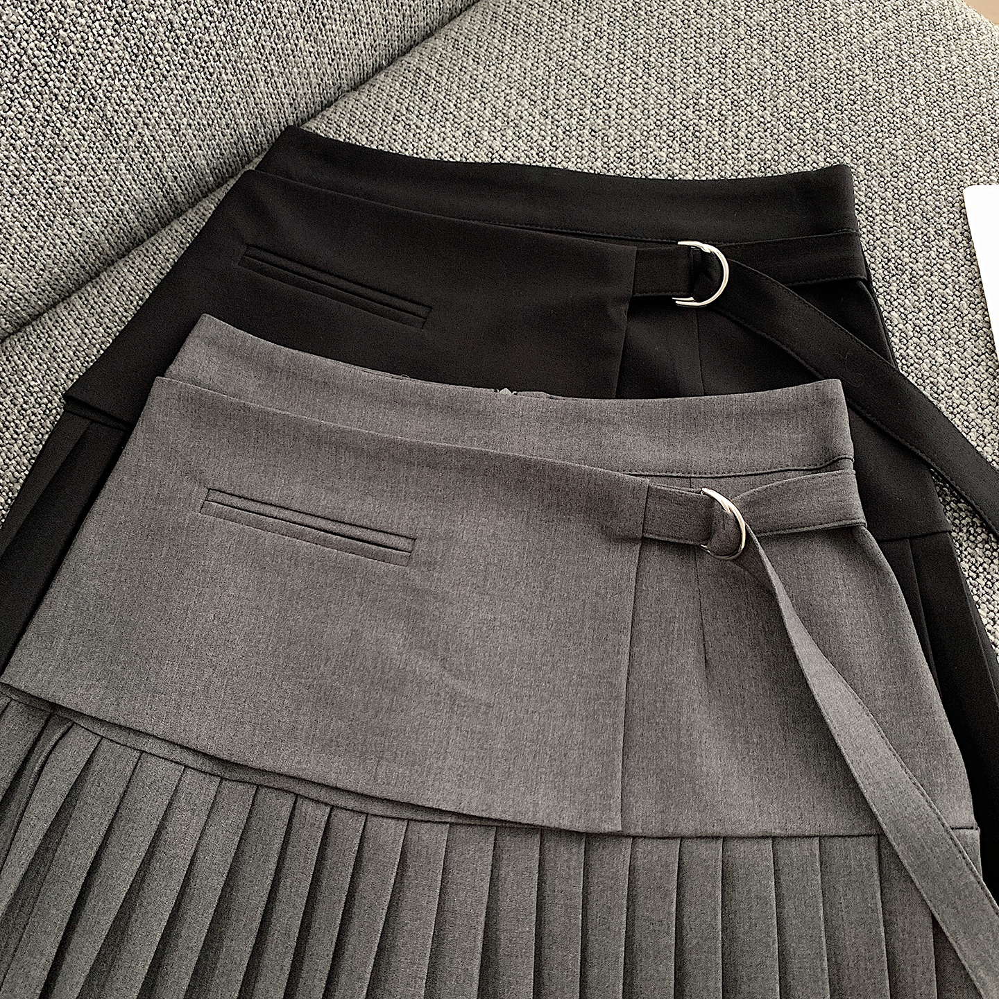 BY13874# 夏韩版高腰显瘦假两件设计感灰色西装a字半身短裙百褶裙 服裝批發女裝批發服飾貨源