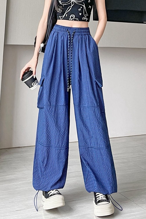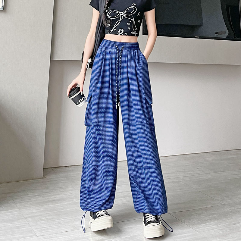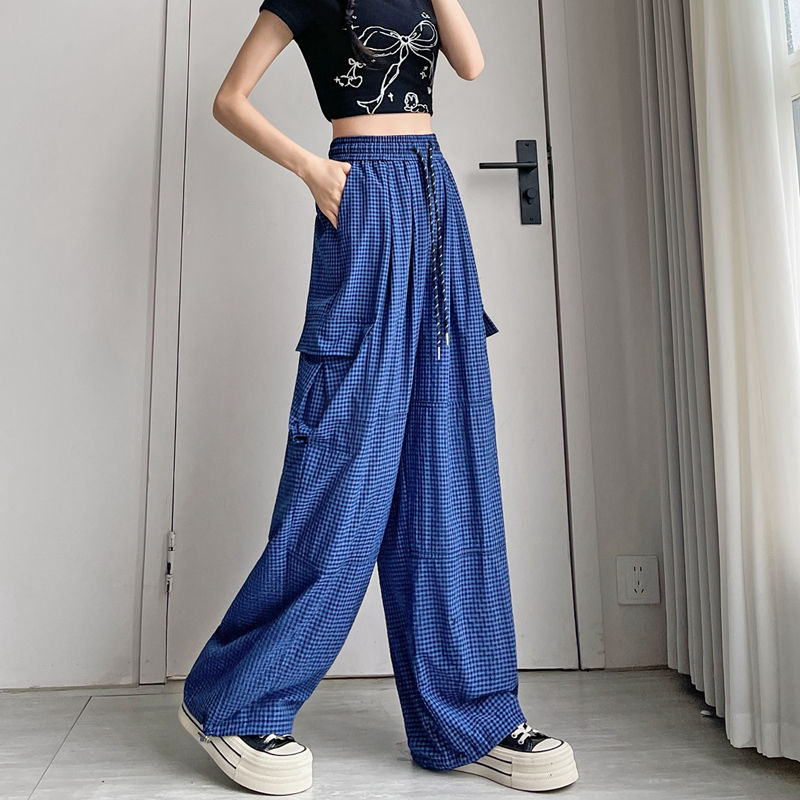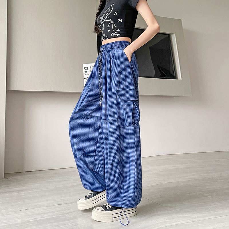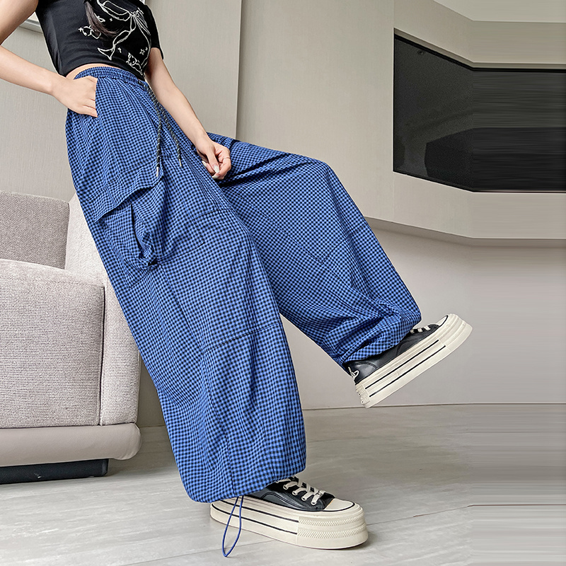 BY13901# 格子工装裤速干裤春夏束脚裤韩版高腰阔腿裤两穿休闲裤女 服裝批發女裝批發服飾貨源