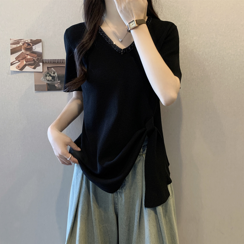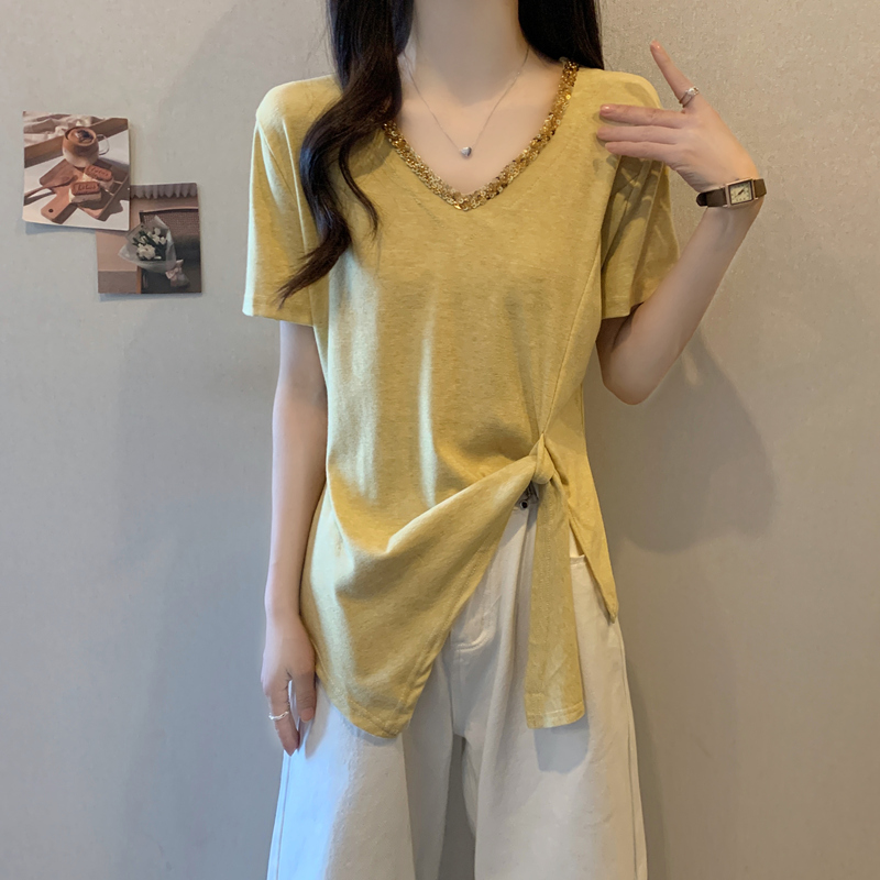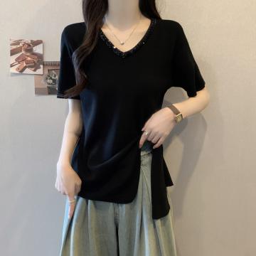 BY13904# 大码女装夏装胖妹妹短袖T恤新款不规则韩版显瘦洋气亮片上衣 服裝批發女裝批發服飾貨源