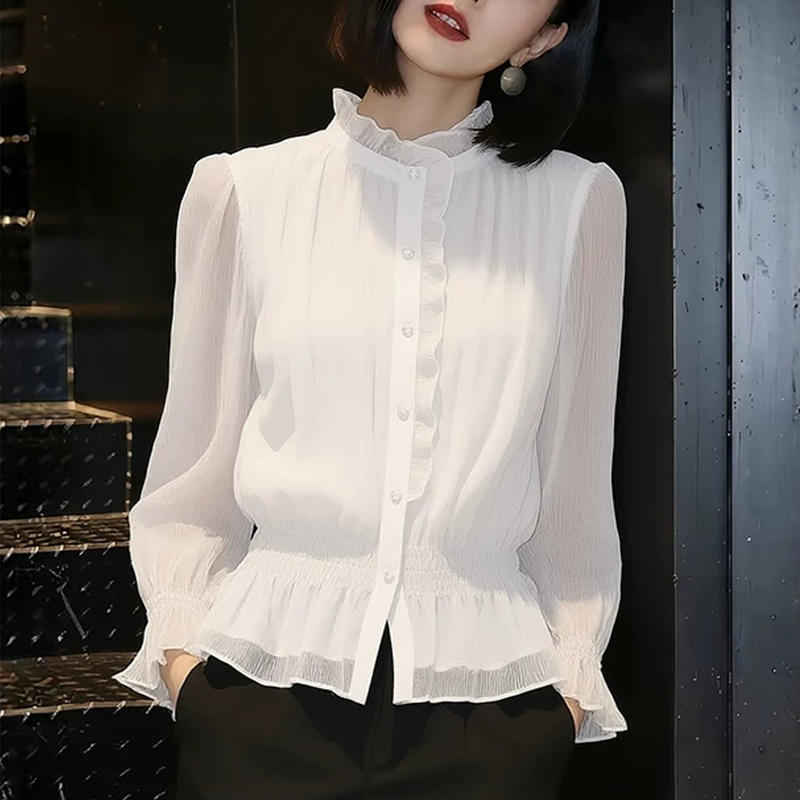 BY13928# 气质百搭白色轻薄衬衫女春季新款洋气减龄小衫高端精致衬衣 服裝批發女裝批發服飾貨源