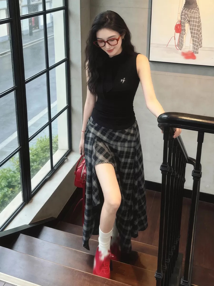 BY14252# 巨好看初夏一整套ootd穿搭气质高级感御姐背心上衣两件套装裙子女 服裝批發女裝批發服飾貨源