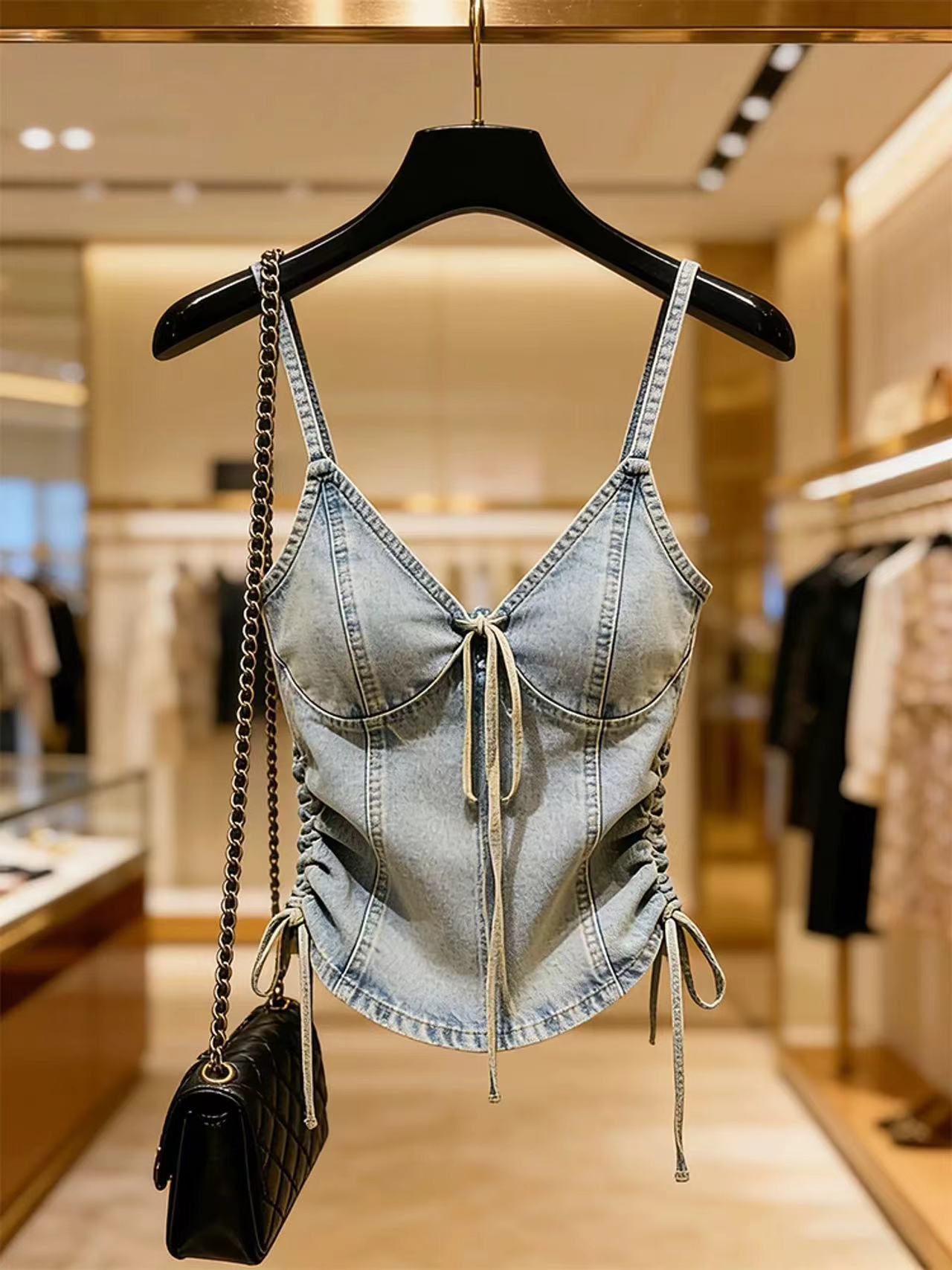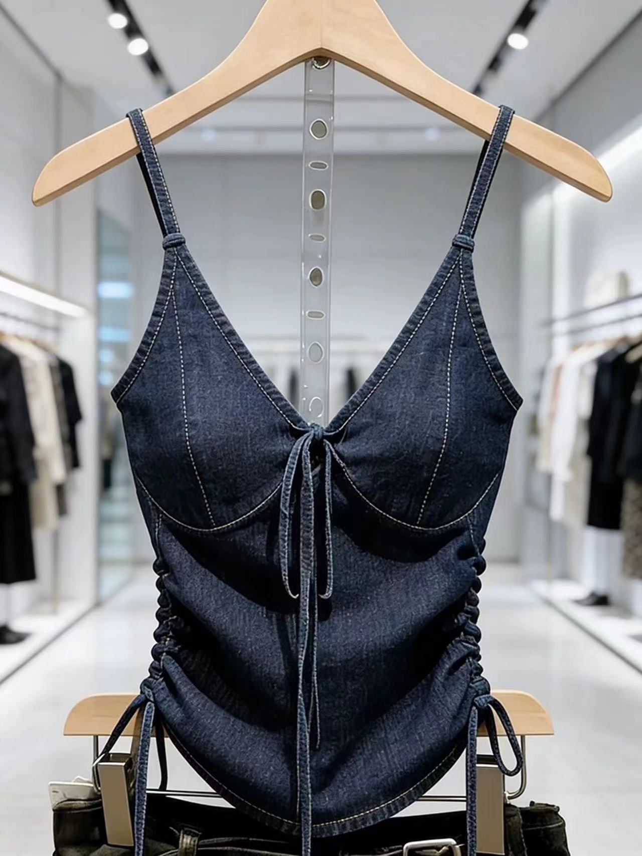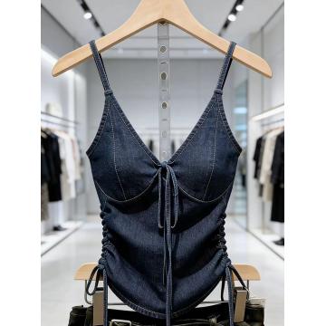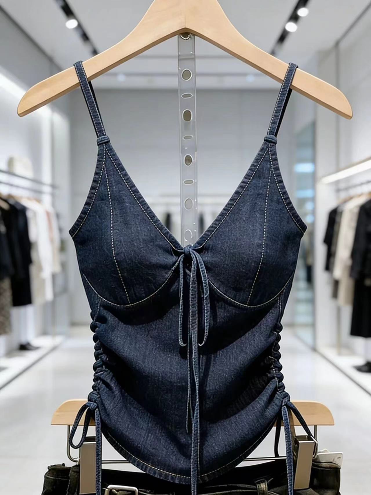 BY14560# 蓝色牛仔吊带上衣女春季气质高级感时髦洋气巨好看系带背心 服裝批發女裝批發服飾貨源