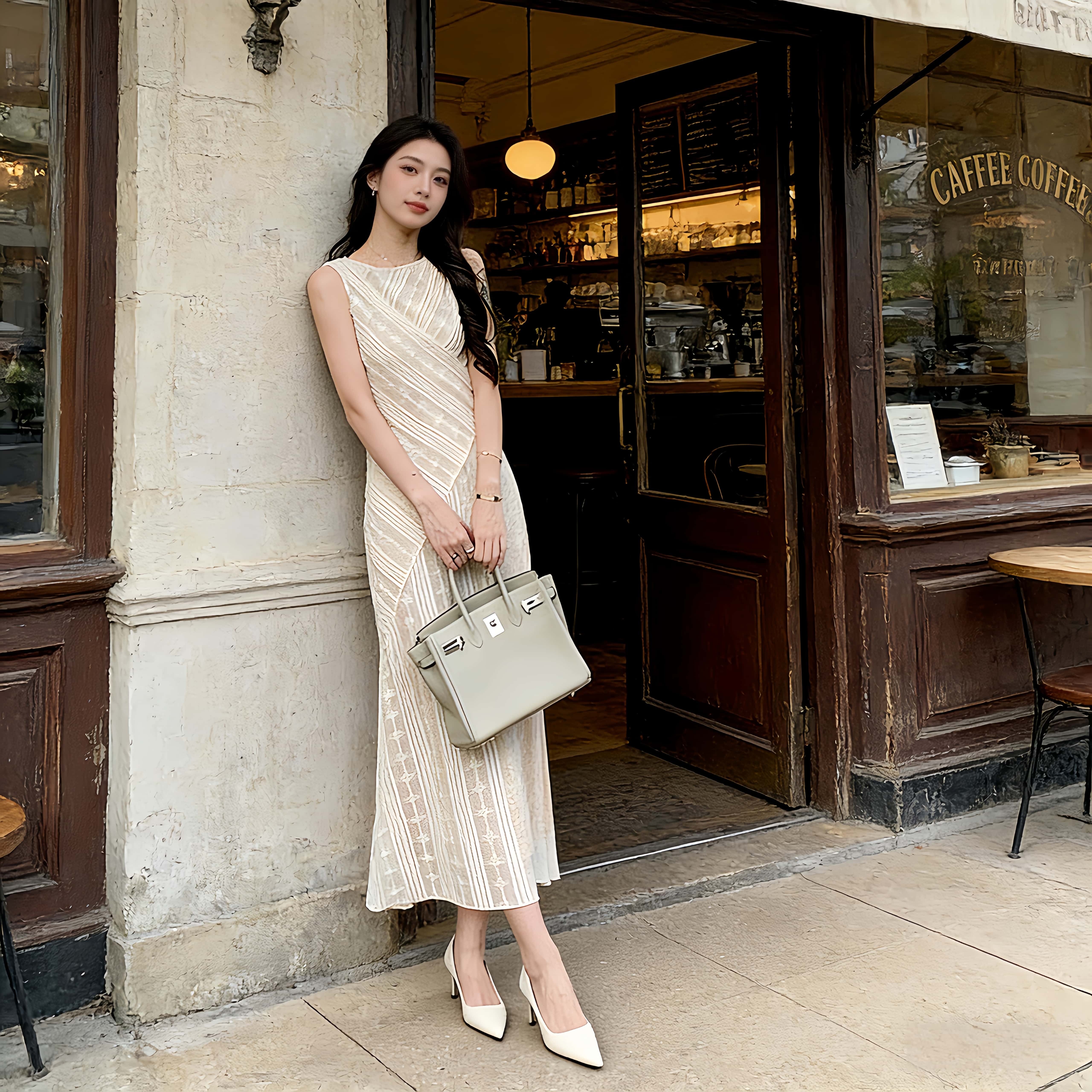 BY15169# 法式设计感蕾丝拼接白色连衣裙女装夏季新款时尚气质无袖长裙 服裝批發女裝批發服飾貨源