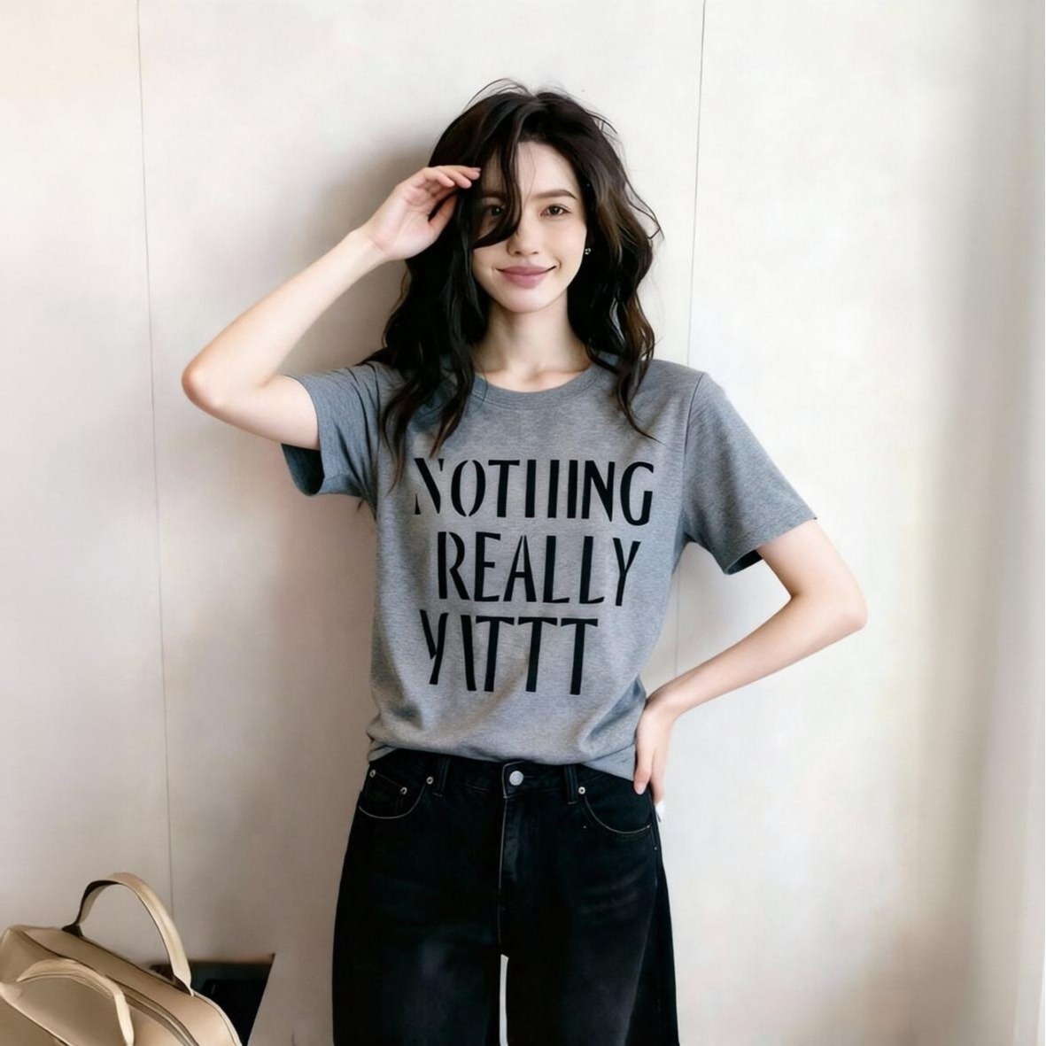 BY15639# 夏季新款设计感小众圆领英文字母短袖复古灰色T恤上衣 服裝批發女裝批發服飾貨源