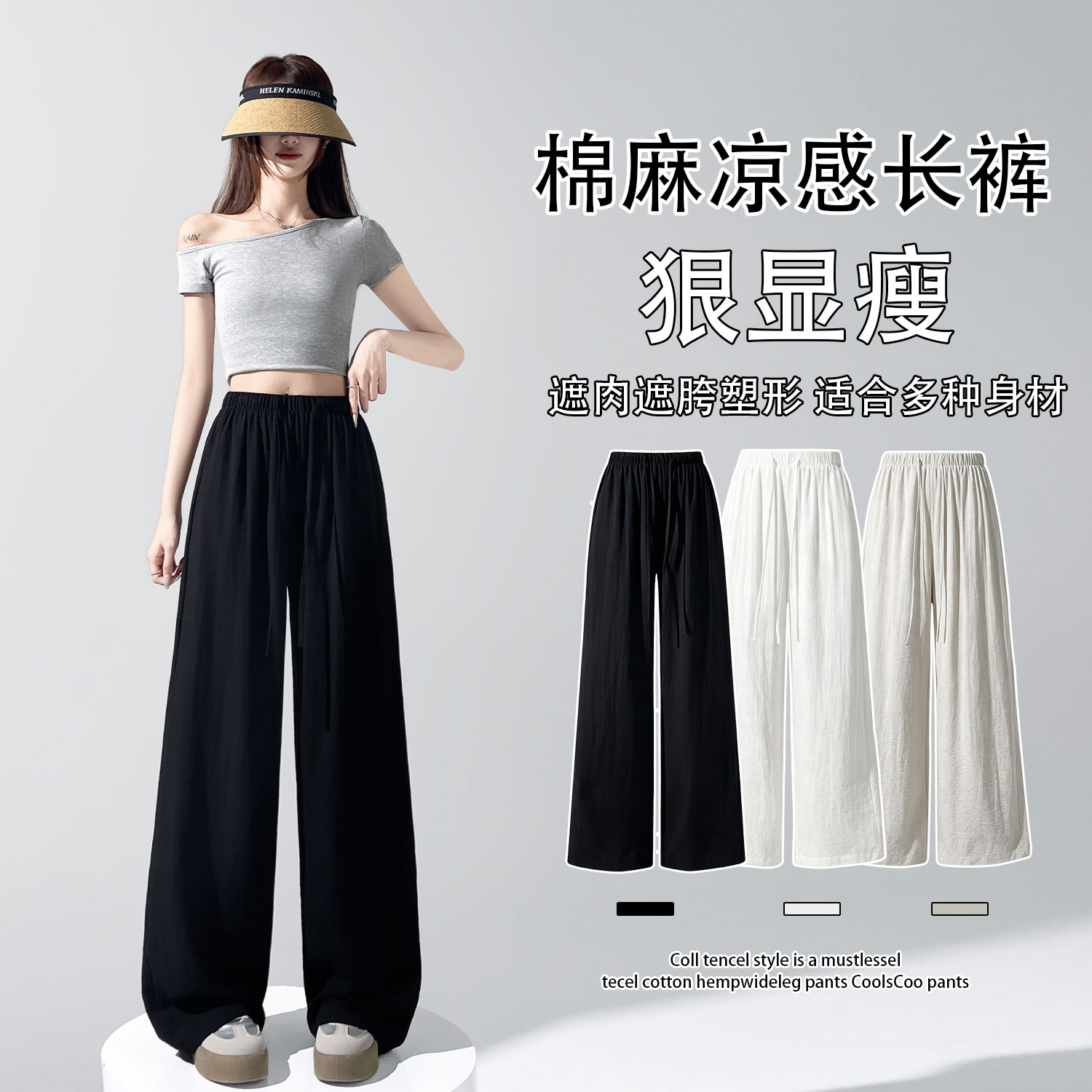 BY16193# 慵懒亚麻阔腿裤女新款薄款垂感松弛宽松休闲直筒 服裝批發女裝批發服飾貨源