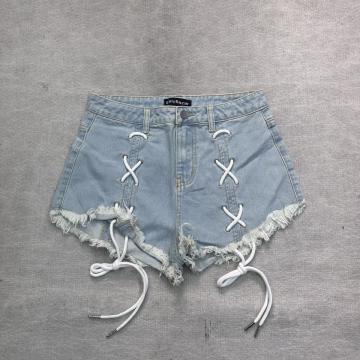BY16678# 毛边牛仔短裤女夏季新款绑带高腰显瘦辣妹a字时尚浅色热裤