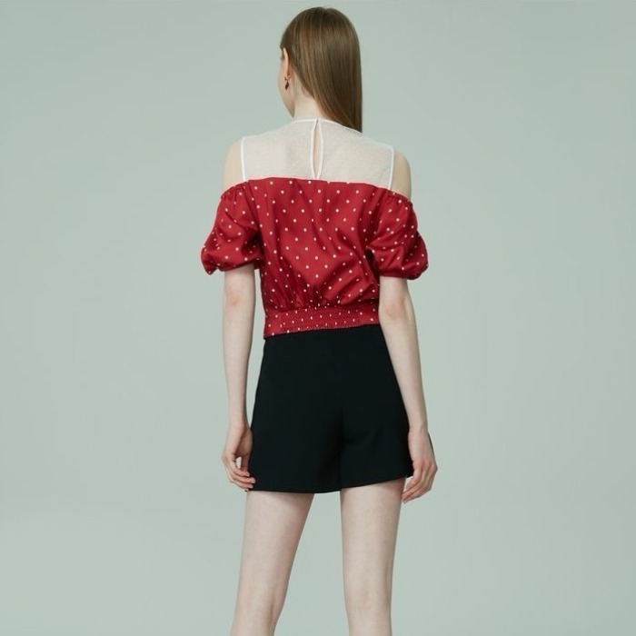 BY16687# 衬衫春秋新款设计款别致女装网纱拼接圆领波点雪纺衫上衣女潮