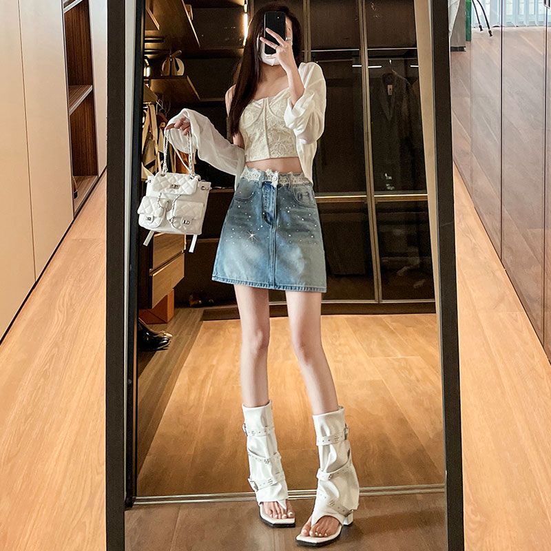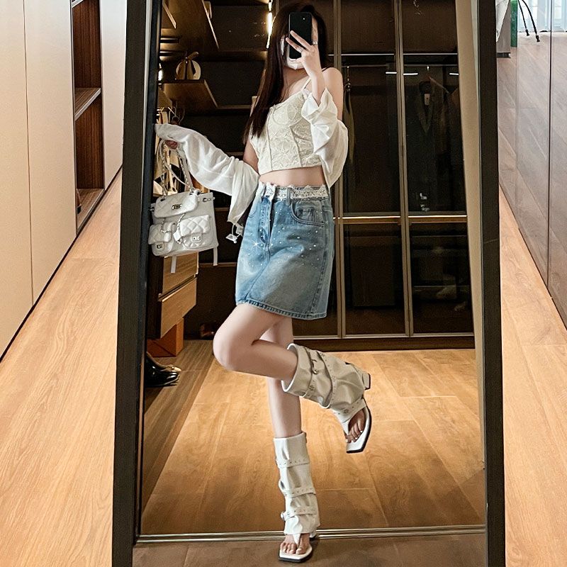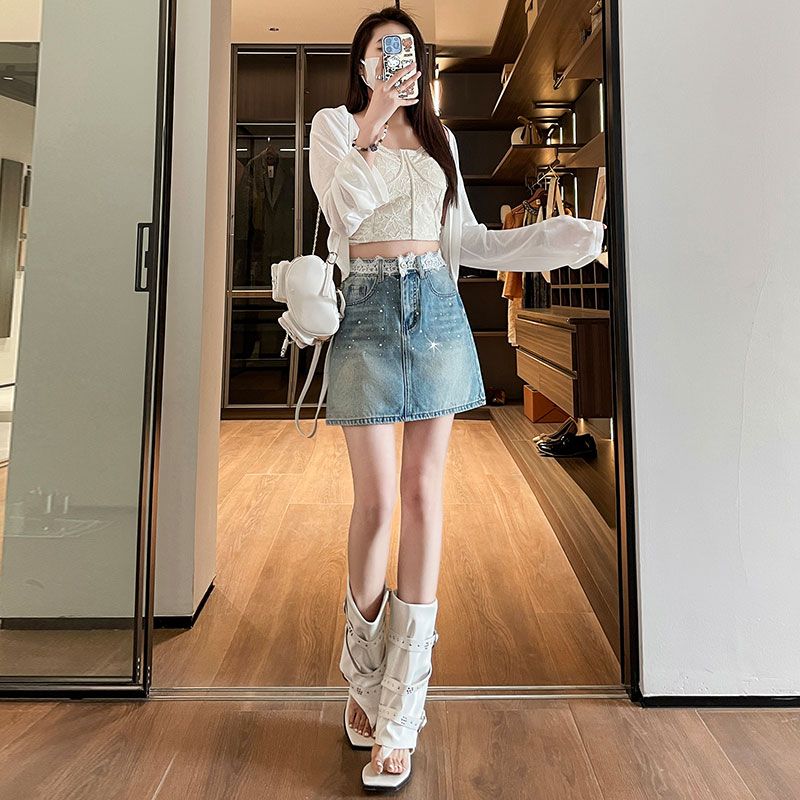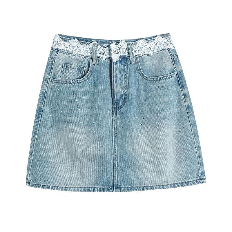 BY16739# 夏季新款时尚潮流防走光蕾丝拼接牛仔裙裤