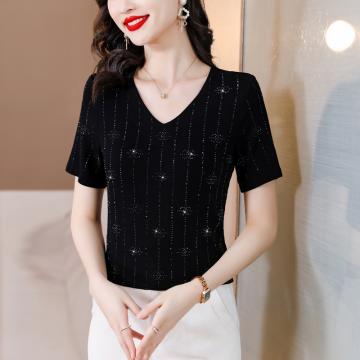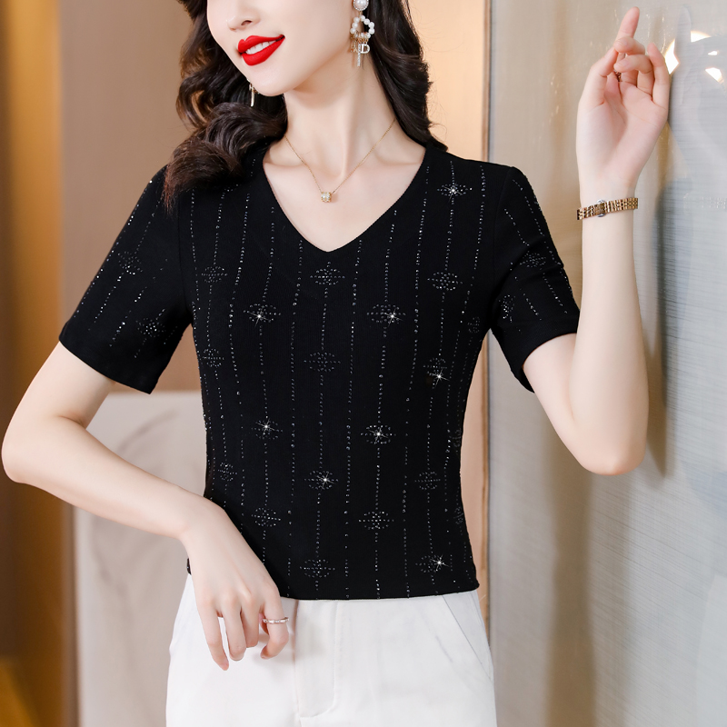 BY16981# 夏季新款短袖大码装高弹棉质亮闪闪重工烫钻T恤上衣 服裝批發女裝批發服飾貨源
