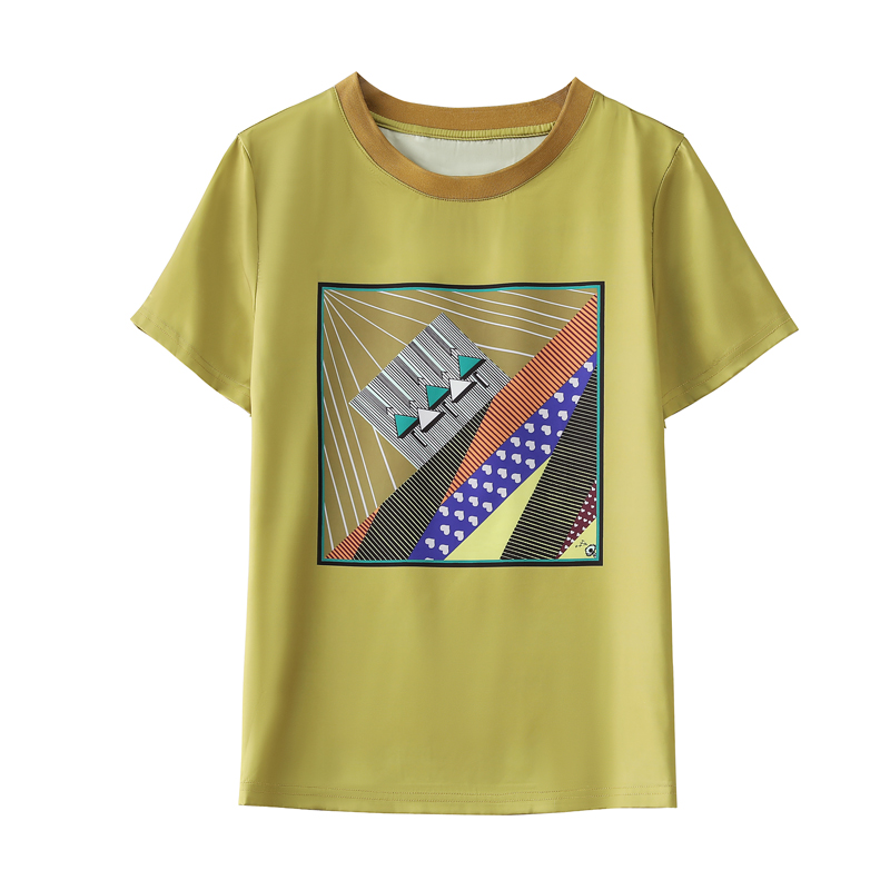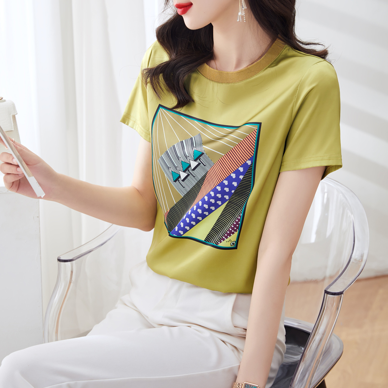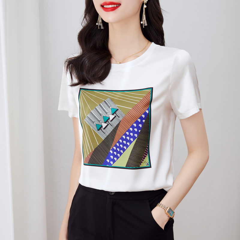 BY16993# 重磅仿缎面真丝新款数码印花宽松圆领韩版时尚T恤上衣 服裝批發女裝批發服飾貨源