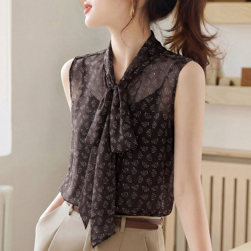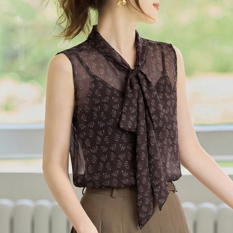 BY16997# 夏季新款系带两件套背心女气质印花无袖百搭上衣 服裝批發女裝批發服飾貨源