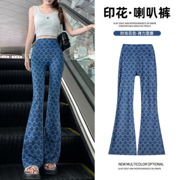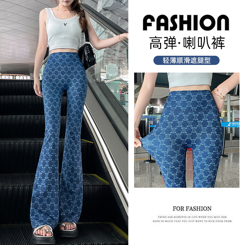 Home > 牛仔裤、长裤 > BY17002# 小个子印花仿牛仔蓝高腰提臀休闲裤运动微喇瑜伽裤喇叭牛仔裤 服裝批發女裝批發服飾貨源