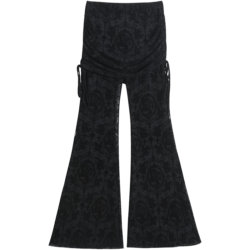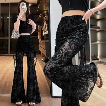 Home > 牛仔裤、长裤 > BY17006# 夏季新款韩版高腰显瘦垂感喇叭裤蕾丝屁帘喇叭裤 服裝批發女裝批發服飾貨源