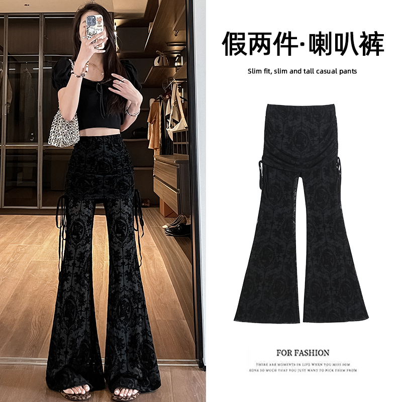 BY17006# 夏季新款韩版高腰显瘦垂感喇叭裤蕾丝屁帘喇叭裤 服裝批發女裝批發服飾貨源