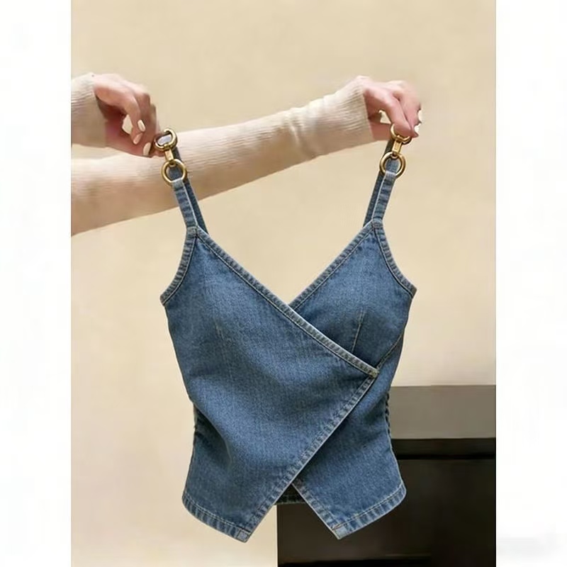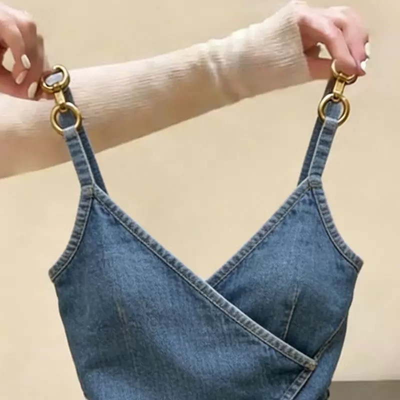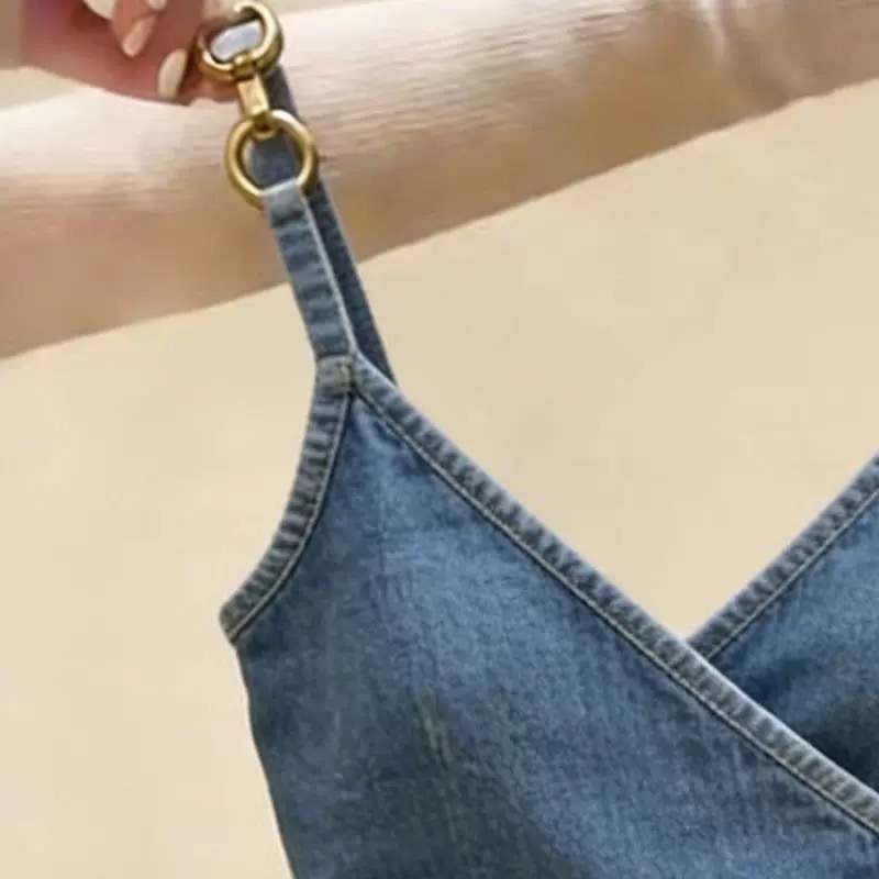 BY17024# 小个子牛仔吊带背心无袖显瘦外穿上衣气质爆款薄款高级感打底衫 服裝批發女裝批發服飾貨源