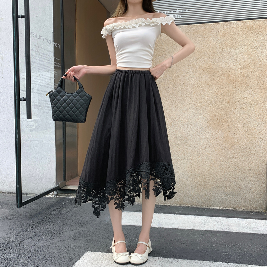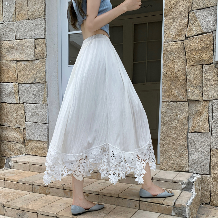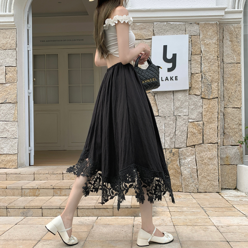 BY17028# 小众设计感镂空蕾丝刺绣拼接中长半身裙女夏不规则高腰a字裙 服裝批發女裝批發服飾貨源