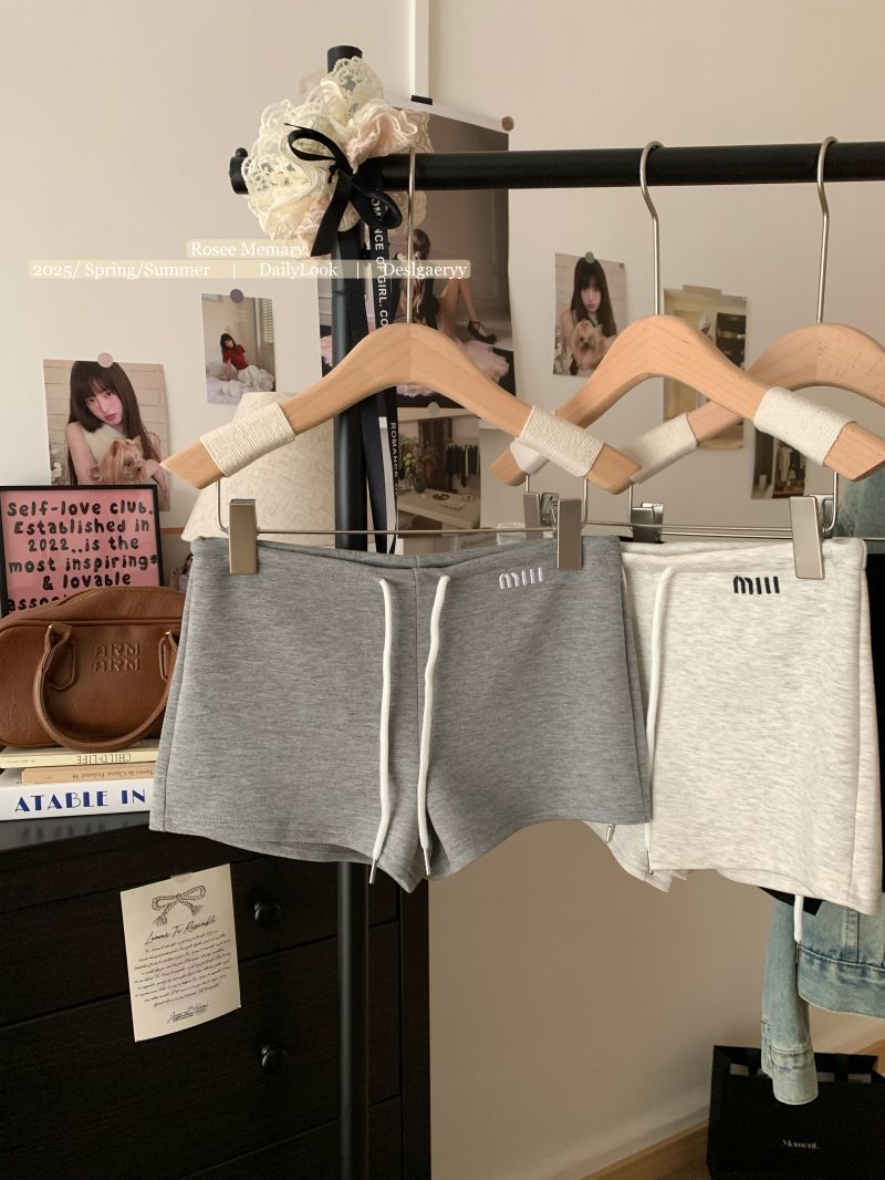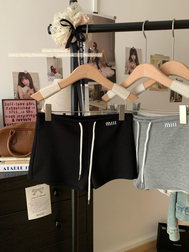 BY17110# 美式辣妹刺绣抽绳运动短裤女夏季小个子外穿显瘦阔腿休闲a字热裤 服裝批發女裝批發服飾貨源