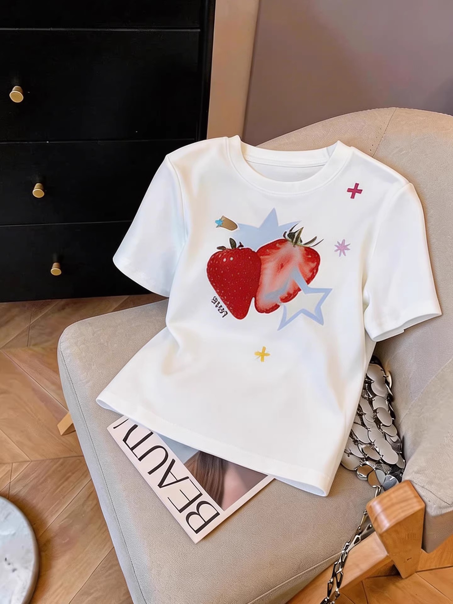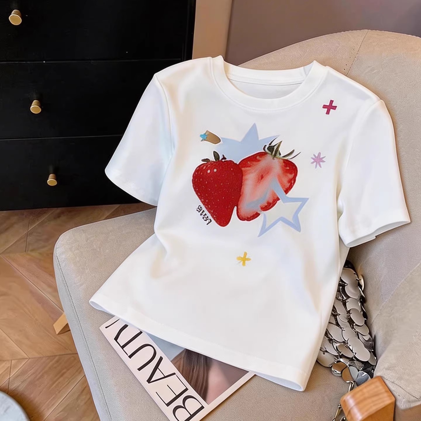 纯棉正肩短袖T恤女印花 服裝批發女裝批發服飾貨源