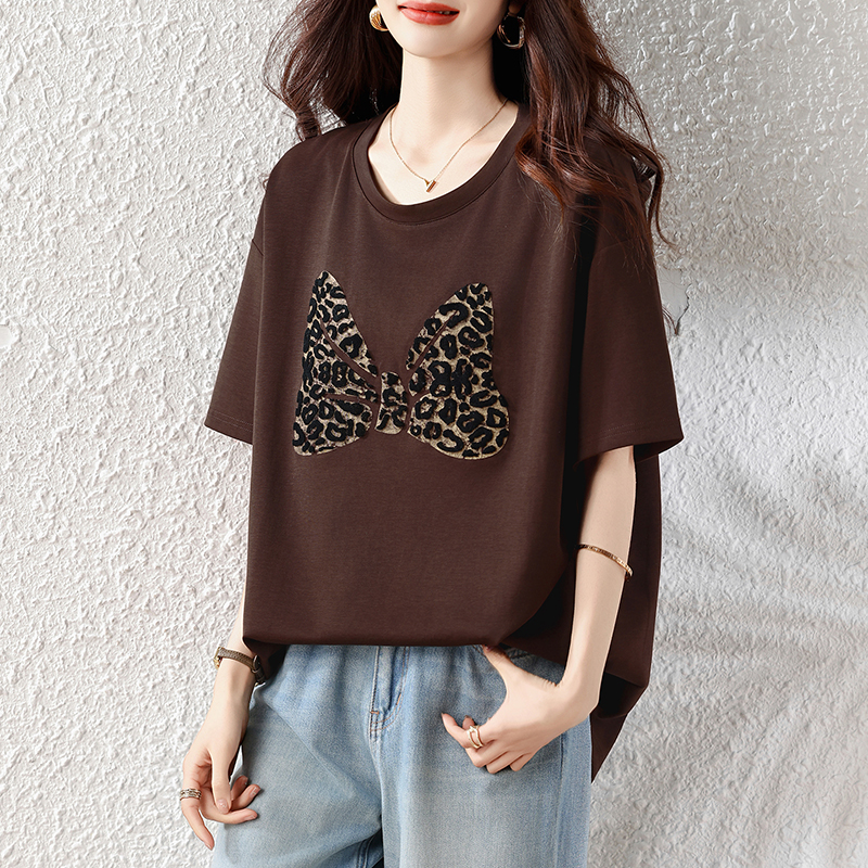 BY17184# 时尚蝴蝶结印花短袖T恤女夏季新款女装欧货大码上衣潮
