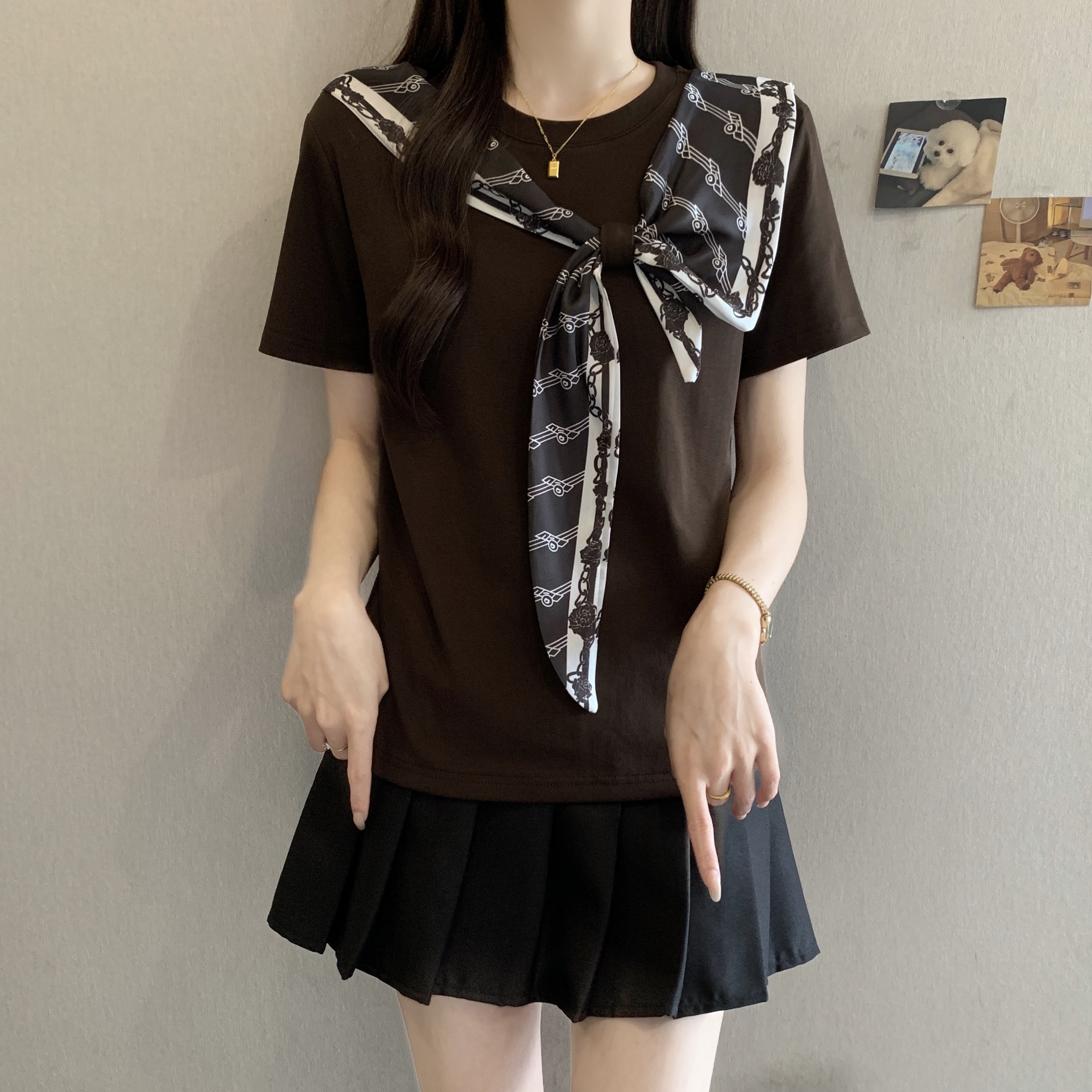 BY17233# 大码蝴蝶结披肩短袖T恤女夏季新款时尚减龄宽松显瘦上衣