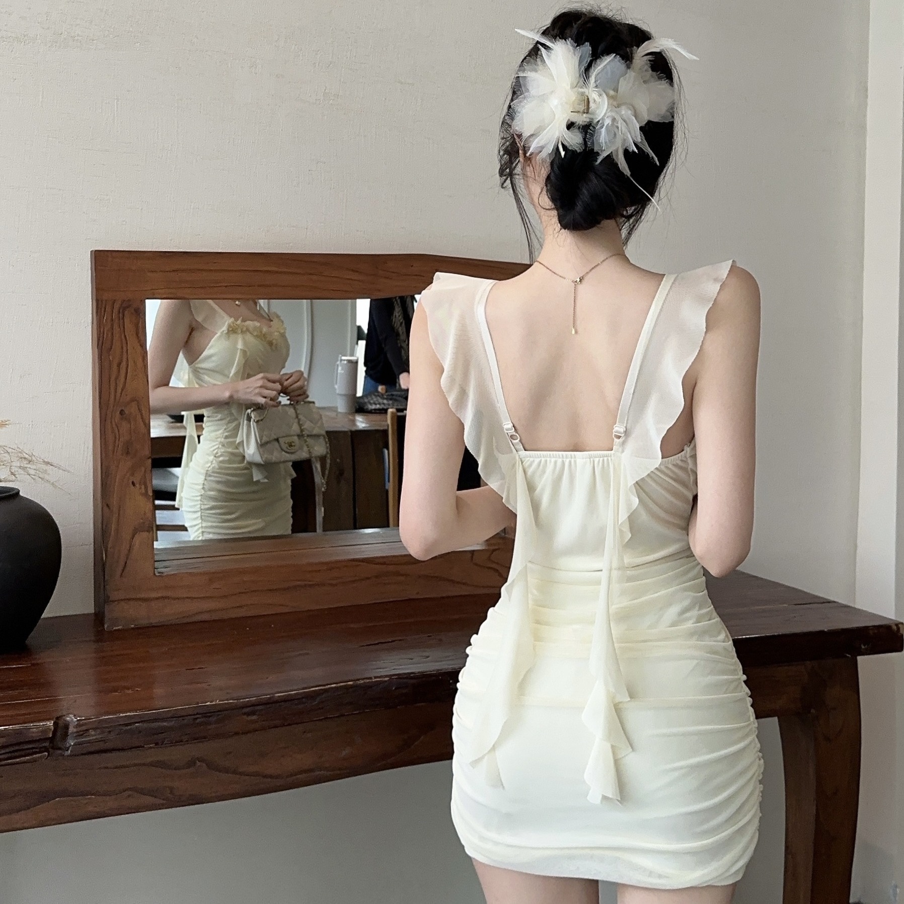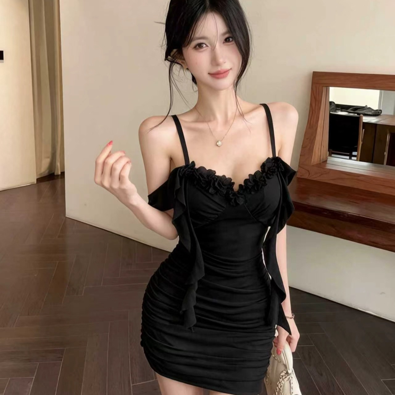 BY17686# 纯欲风立体花吊带连衣裙修身包臀裙约会小礼裙 服裝批發女裝批發服飾貨源