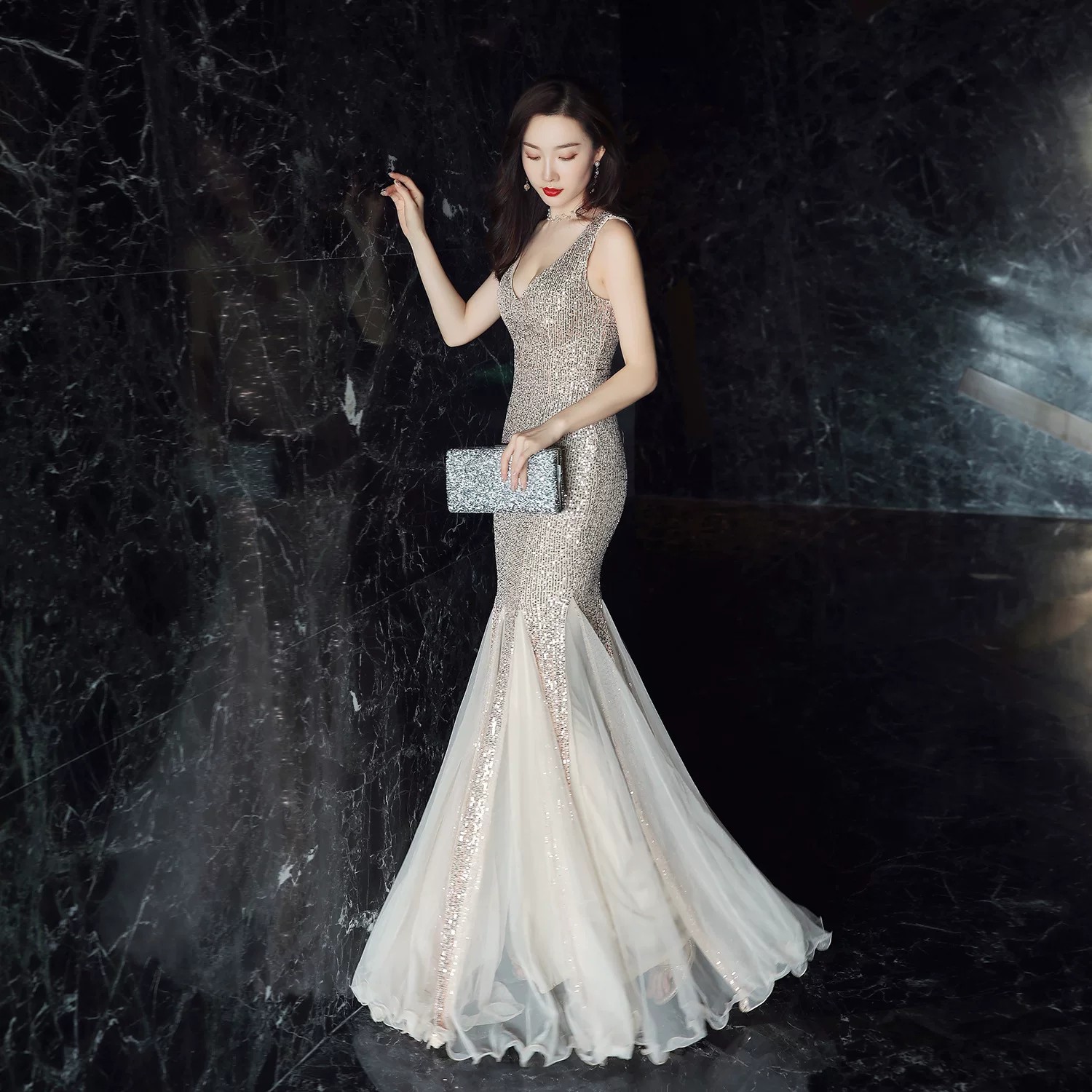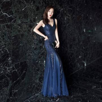 BY17692# 轻奢晚礼服气质高级感亮片鱼尾裙长裙礼服宴会主持敬酒服 服裝批發女裝批發服飾貨源