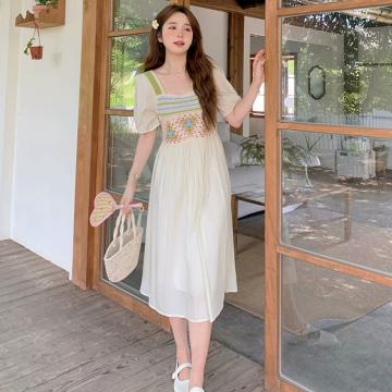 BY17750# 夏季新款法式高级感收腰显瘦波西米亚田园连衣裙 服裝批發女裝批發服飾貨源