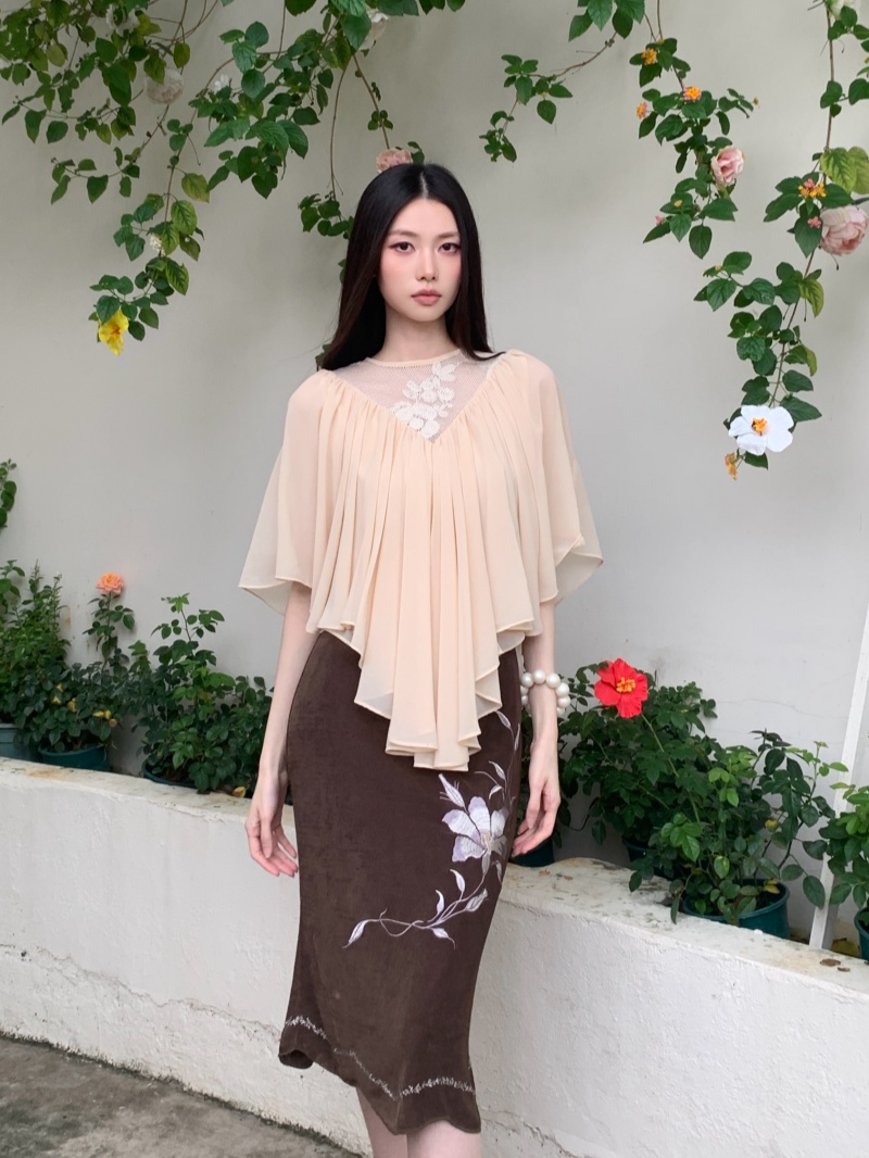 BY17848# 云层蕾丝披风斗篷式雪纺纱上衣 服裝批發女裝批發服飾貨源