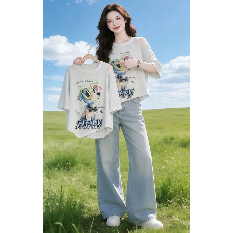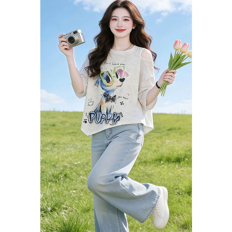 夏季新款露肩设计扎染T恤女士时髦小众高级感优雅上衣 服裝批發女裝批發服飾貨源