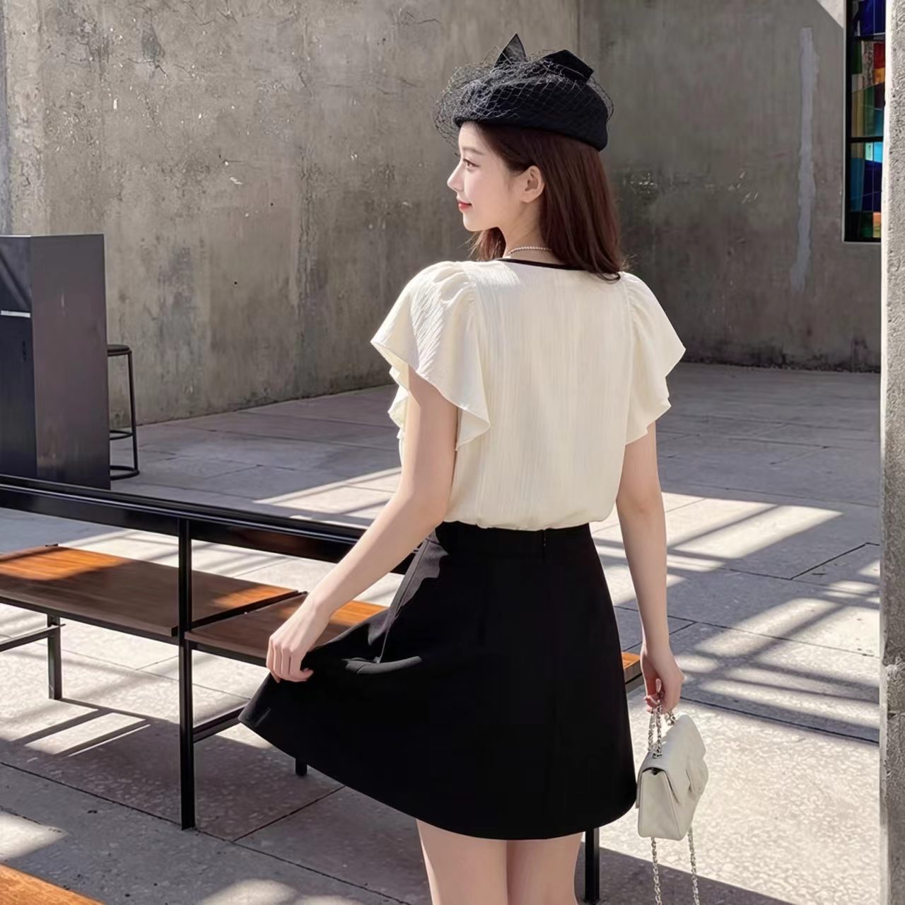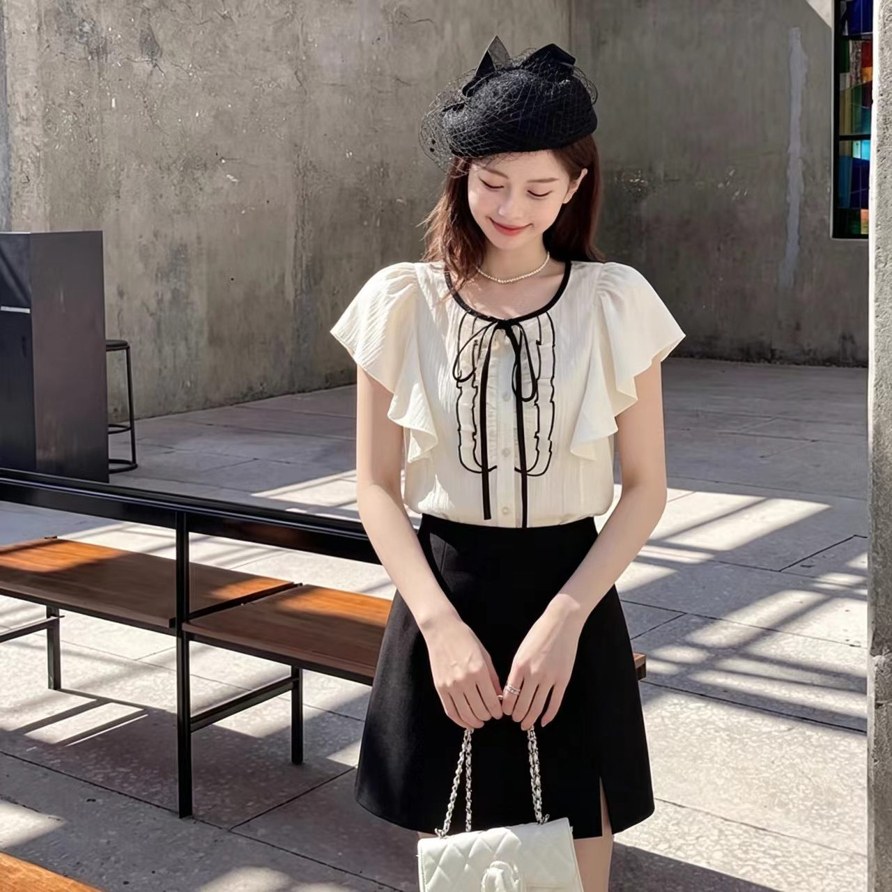 韩系休闲荷叶边衬衣夏季新款高级感洋气别致漂亮小衫甜美套装 服裝批發女裝批發服飾貨源