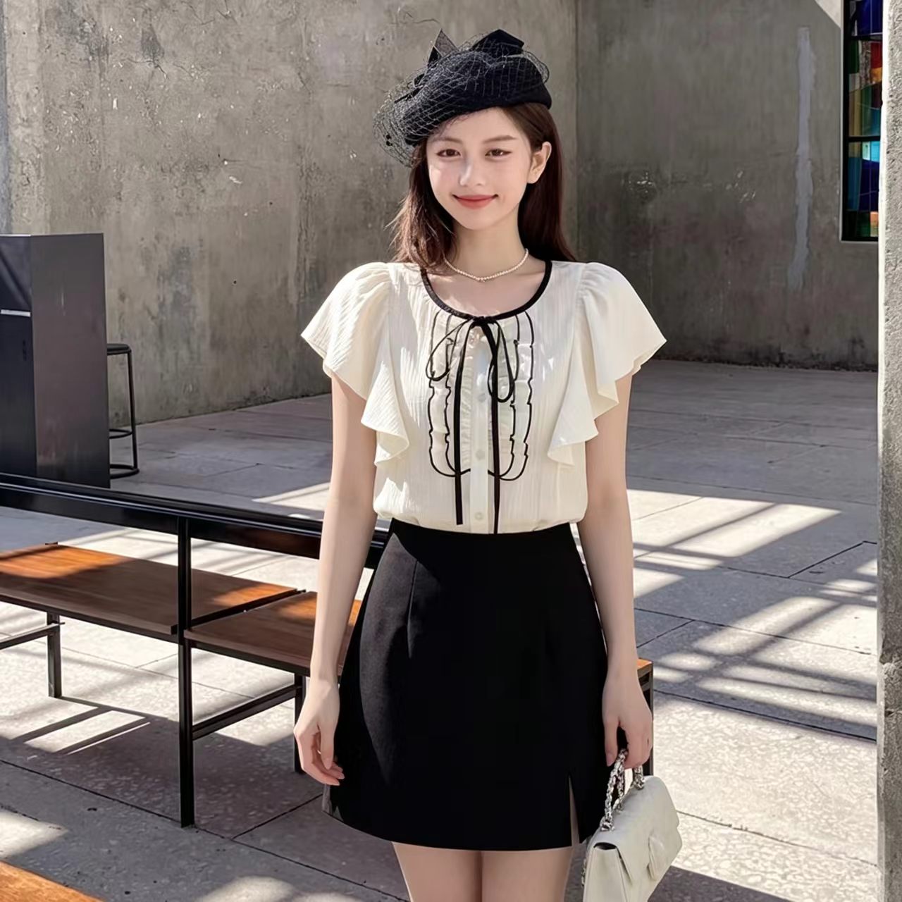 BY17895# 韩系休闲荷叶边衬衣夏季新款高级感洋气别致漂亮小衫甜美套装 服裝批發女裝批發服飾貨源