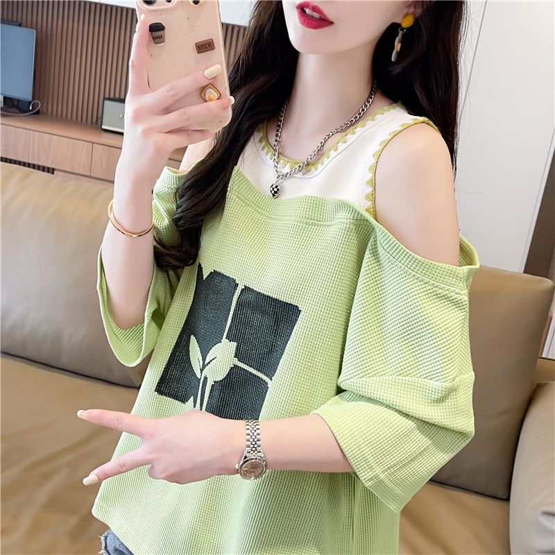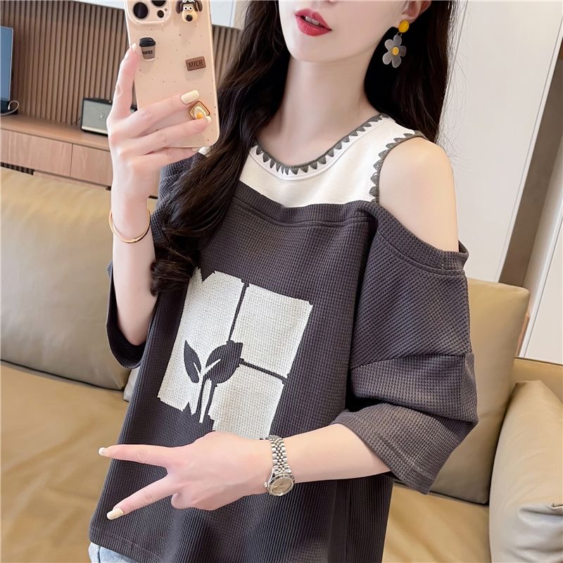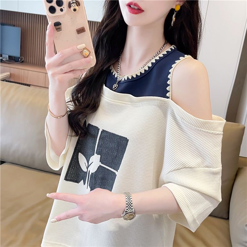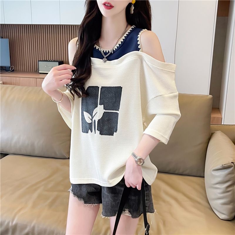 BY18219# 露肩T恤小个子洋气两件短袖夏季纯欲风百搭新款韩版宽松设计上衣 服裝批發女裝批發服飾貨源