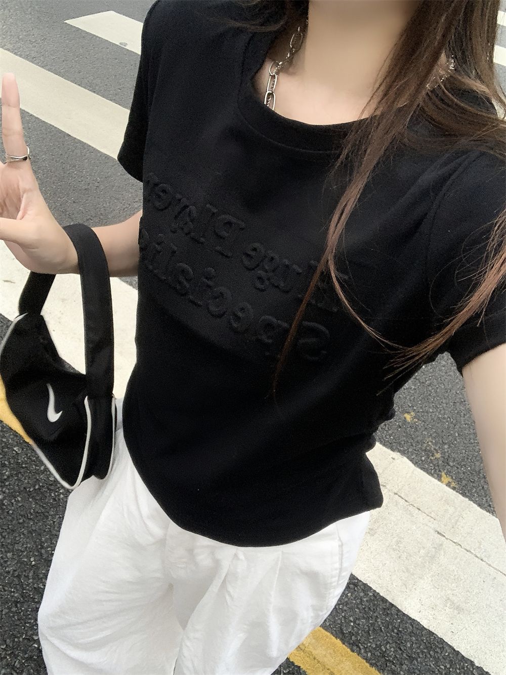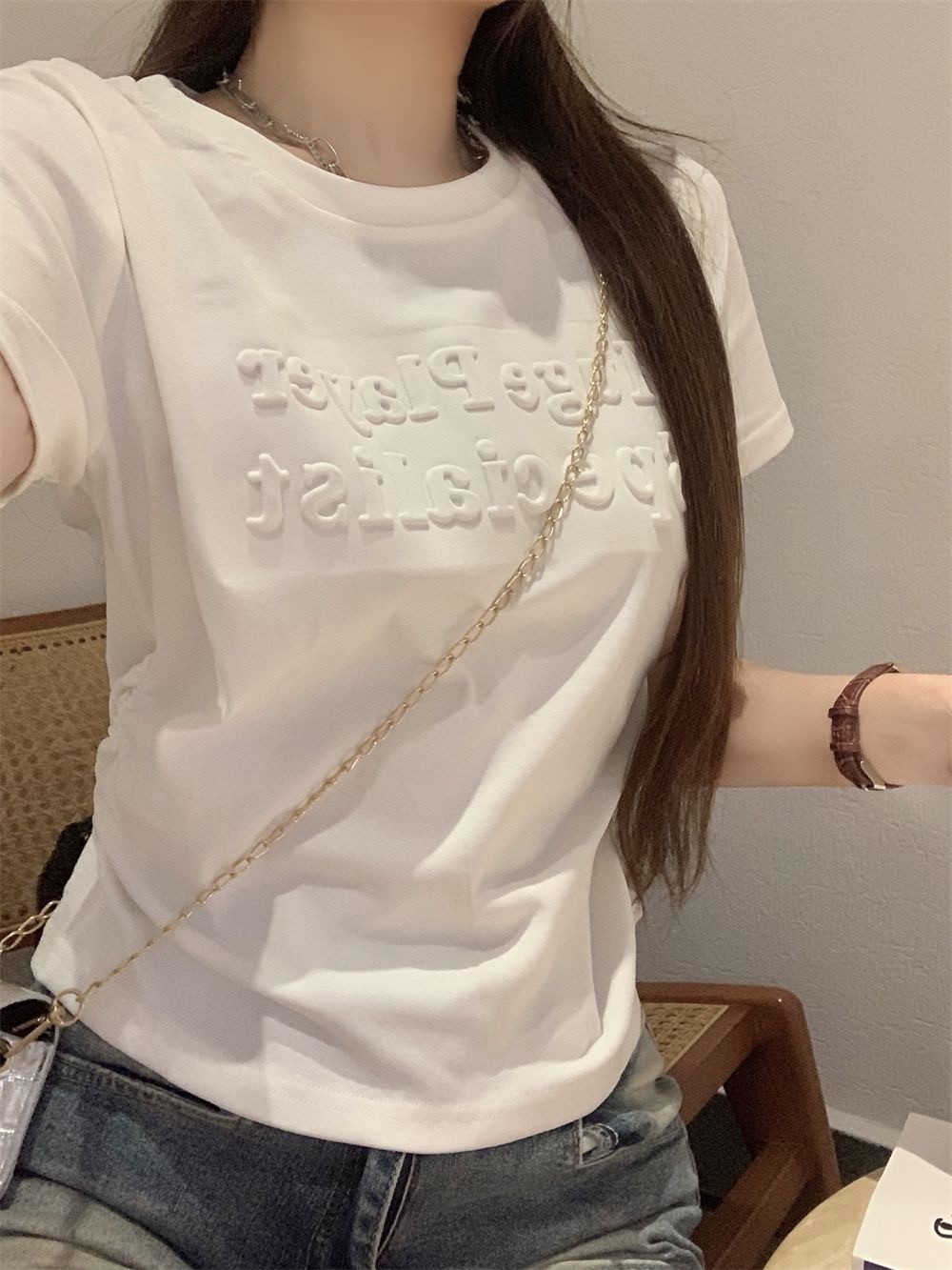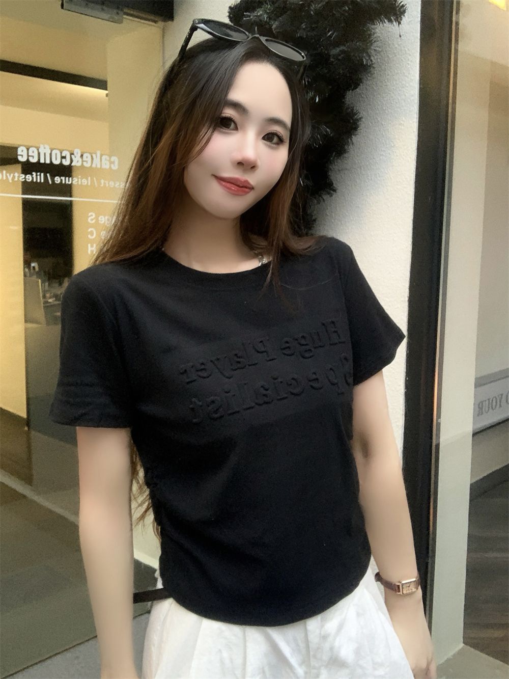 BY18267# 夏季新款韩版修身显瘦短袖T恤女收腰发泡上衣 服裝批發女裝批發服飾貨源