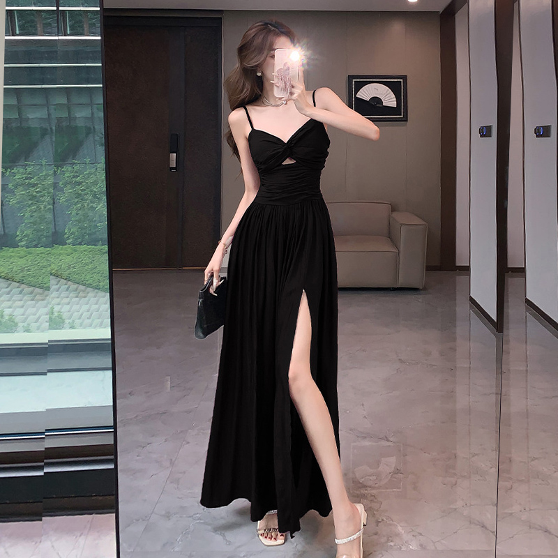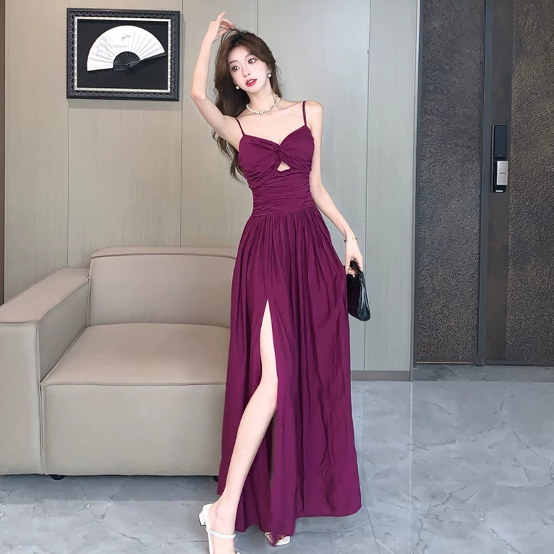 BY18574# 茶歇法式御姐紫色吊带连衣裙子女夏季新款辣妹纯欲风性感开叉长裙 服裝批發女裝批發服飾貨源