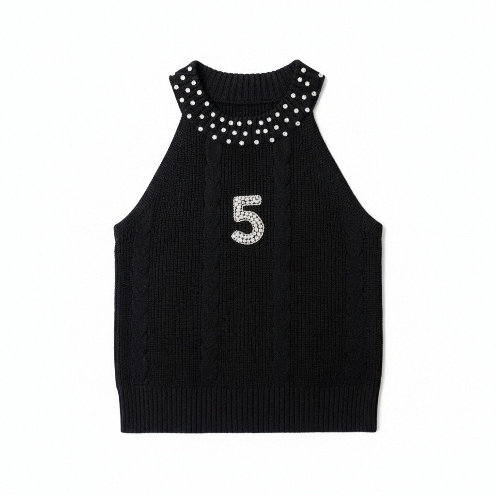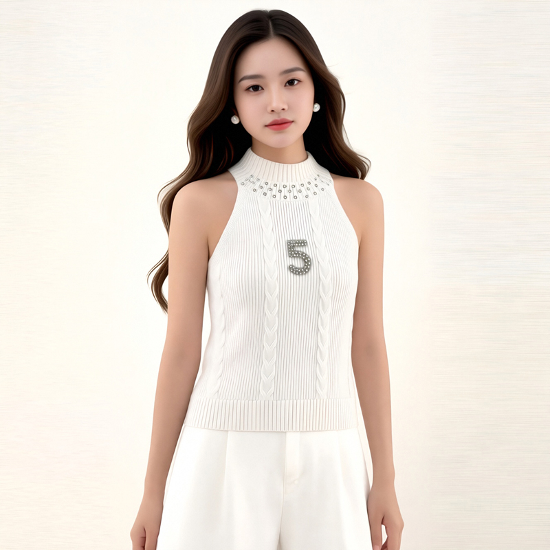 BY18592# 重工镶钻挂脖针织吊带背心女夏季新款温柔风漂亮上衣 服裝批發女裝批發服飾貨源