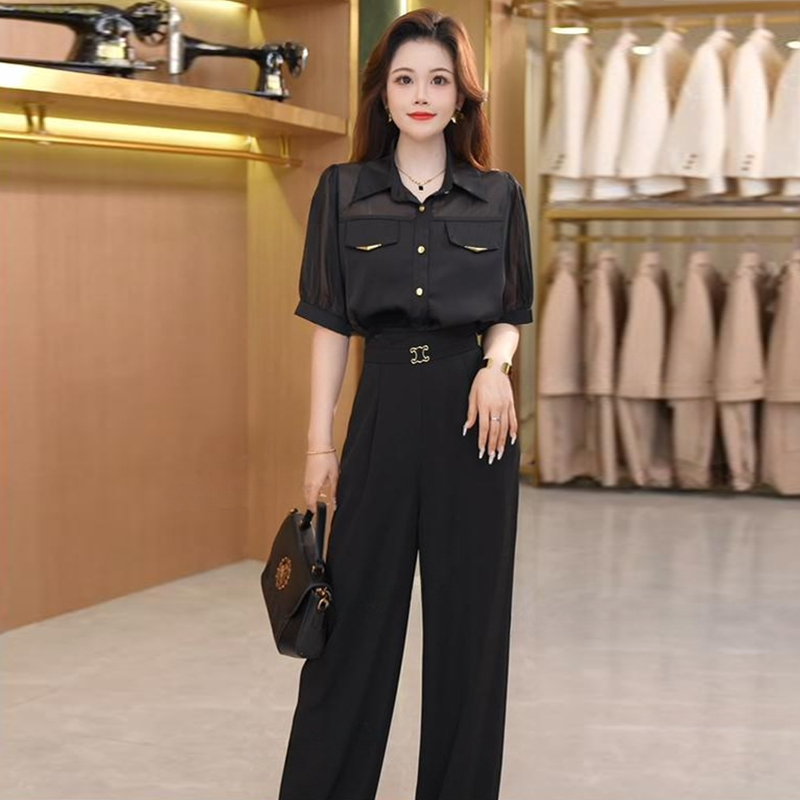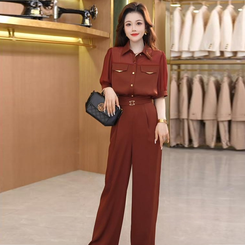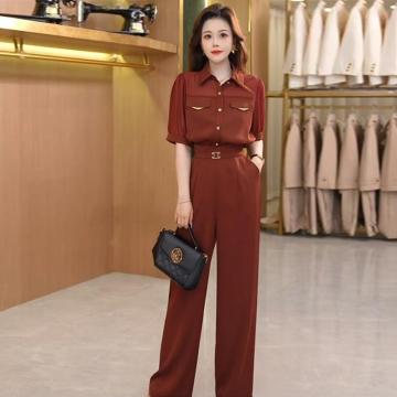 BY18615# 夏季新款轻奢气质显瘦高腰薄款短袖时尚小众休闲套装女 服裝批發女裝批發服飾貨源