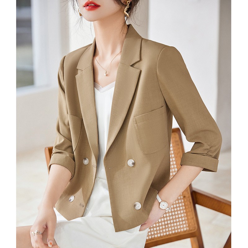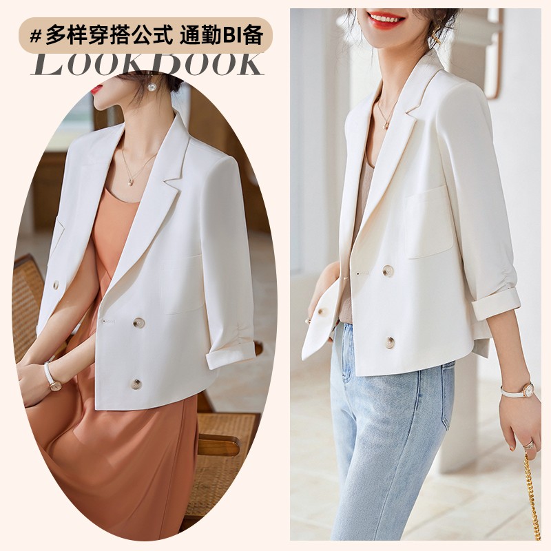 BY18622# 西装外套女夏季薄款七分袖短款小个子高级感开叉小西服上衣 服裝批發女裝批發服飾貨源