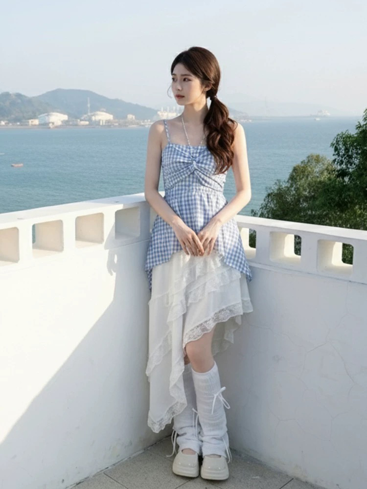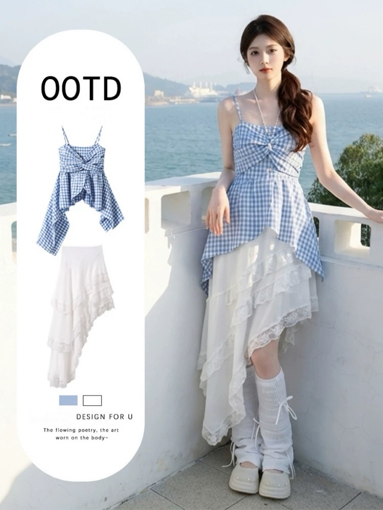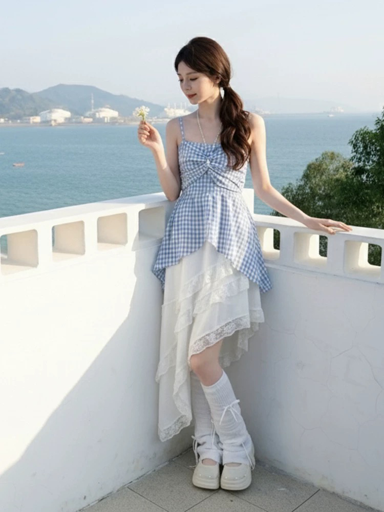 BY18694# 初夏海边度假融冰蓝风连衣裙女新款夏季初恋氛围感穿搭套装裙 服裝批發女裝批發服飾貨源