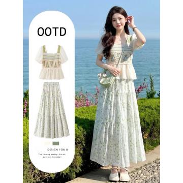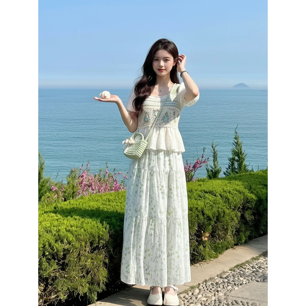 BY18696# 夏日薄荷曼波绿色裙子女款新款初夏季海边度假穿搭连衣裙套装 服裝批發女裝批發服飾貨源