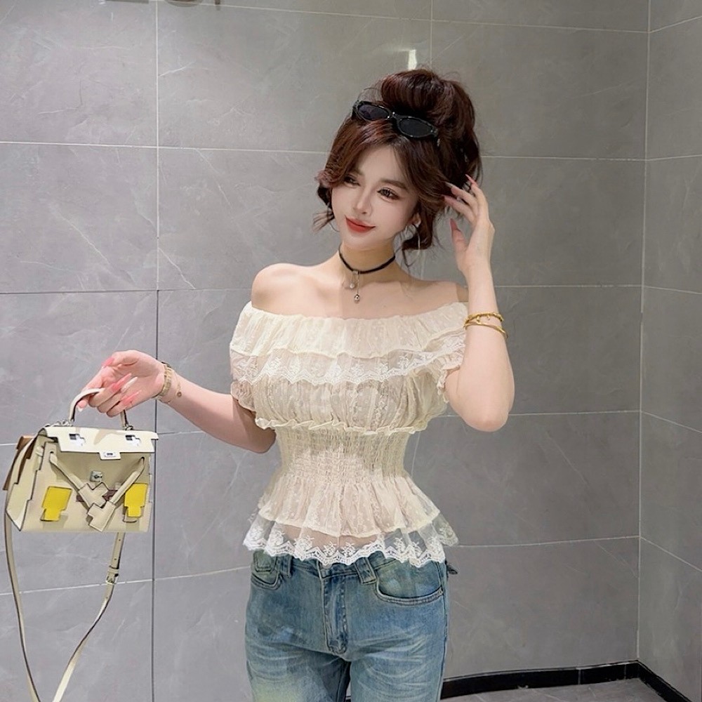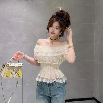 BY18700# 夏季新款时尚百搭设计感法式一字肩收腰短款显瘦上衣女 服裝批發女裝批發服飾貨源