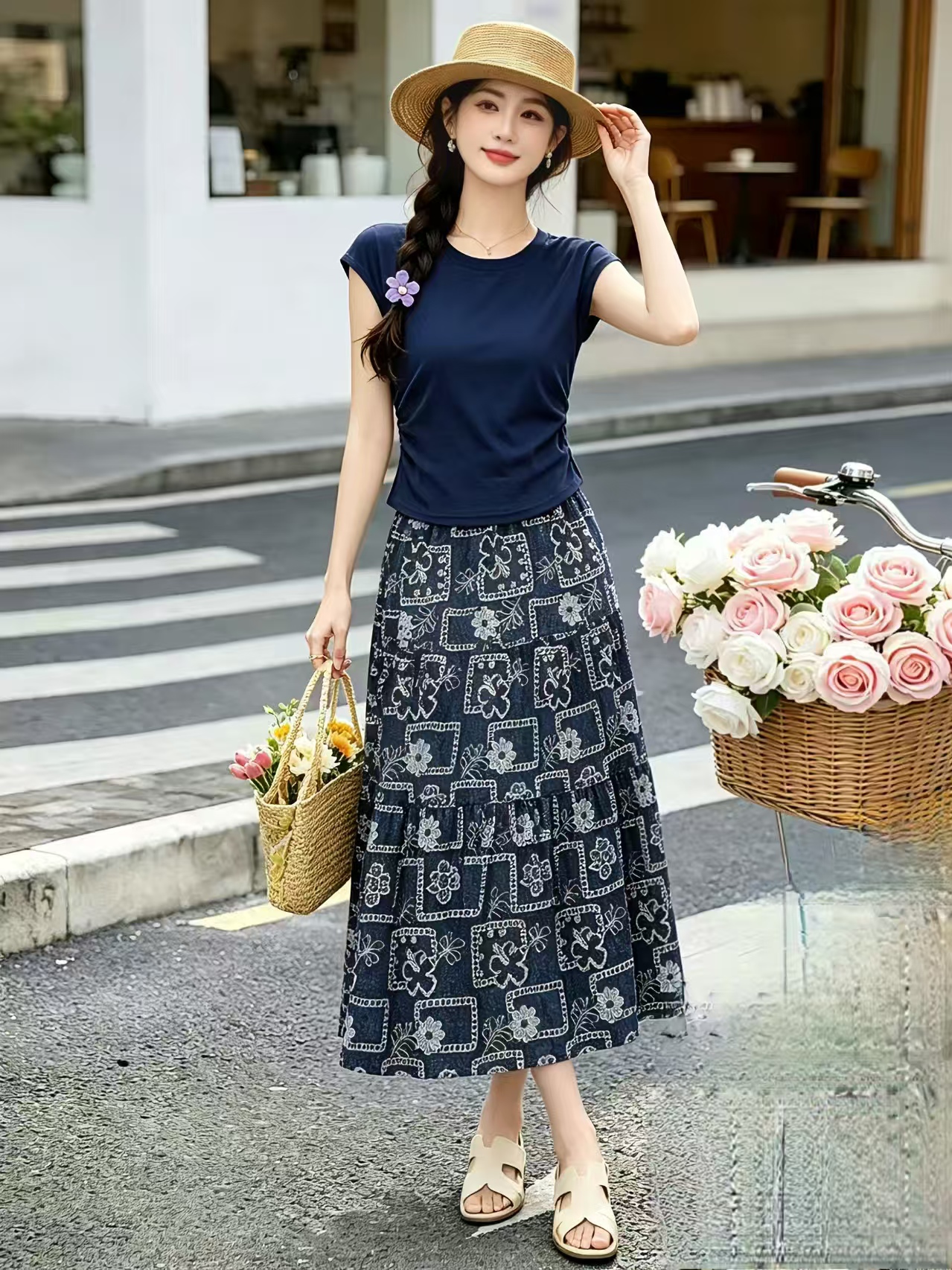 BY18712# 专柜品质巨好看的夏季日常穿搭一整套新款度假风印花裙两件套 服裝批發女裝批發服飾貨源