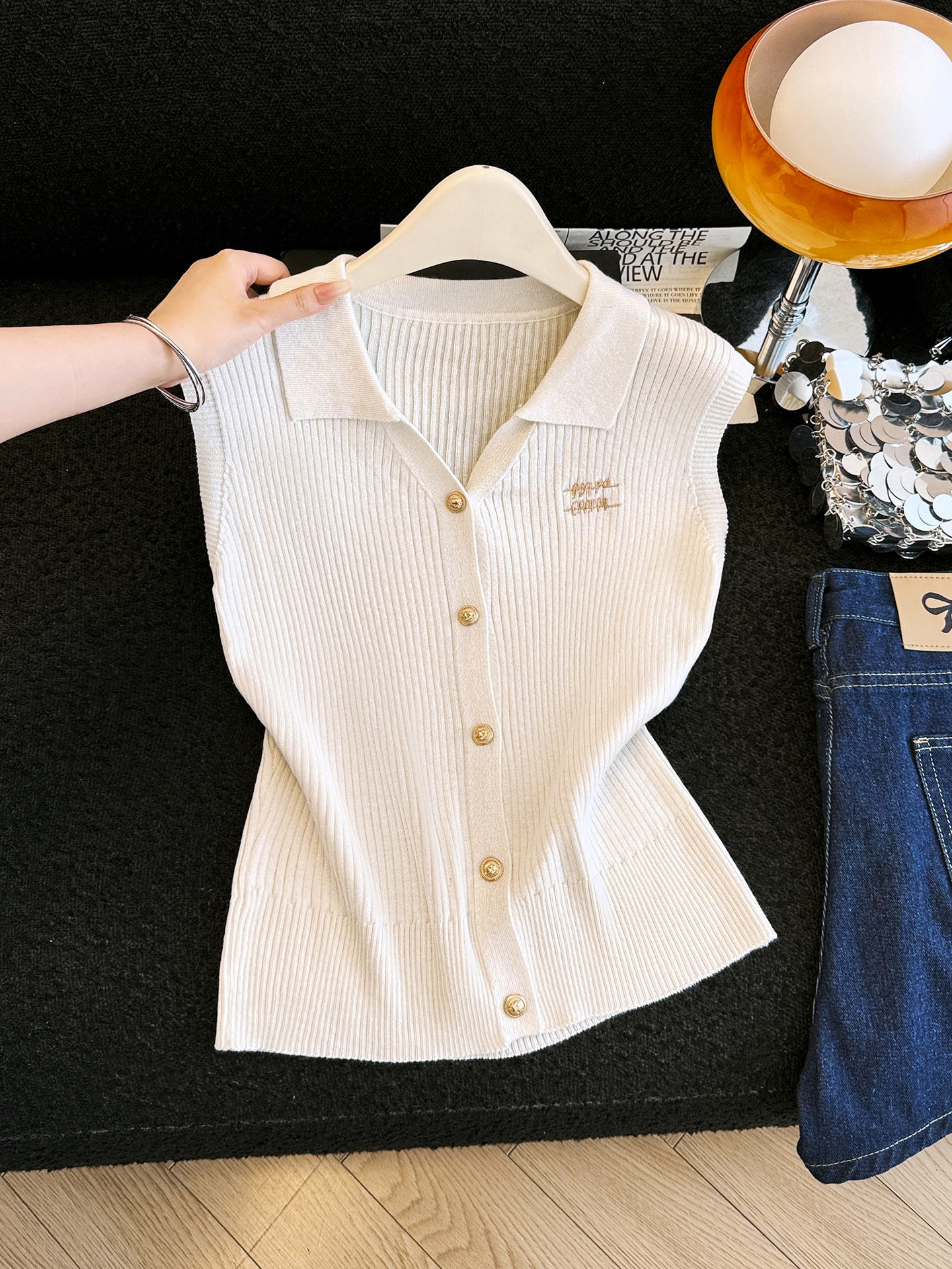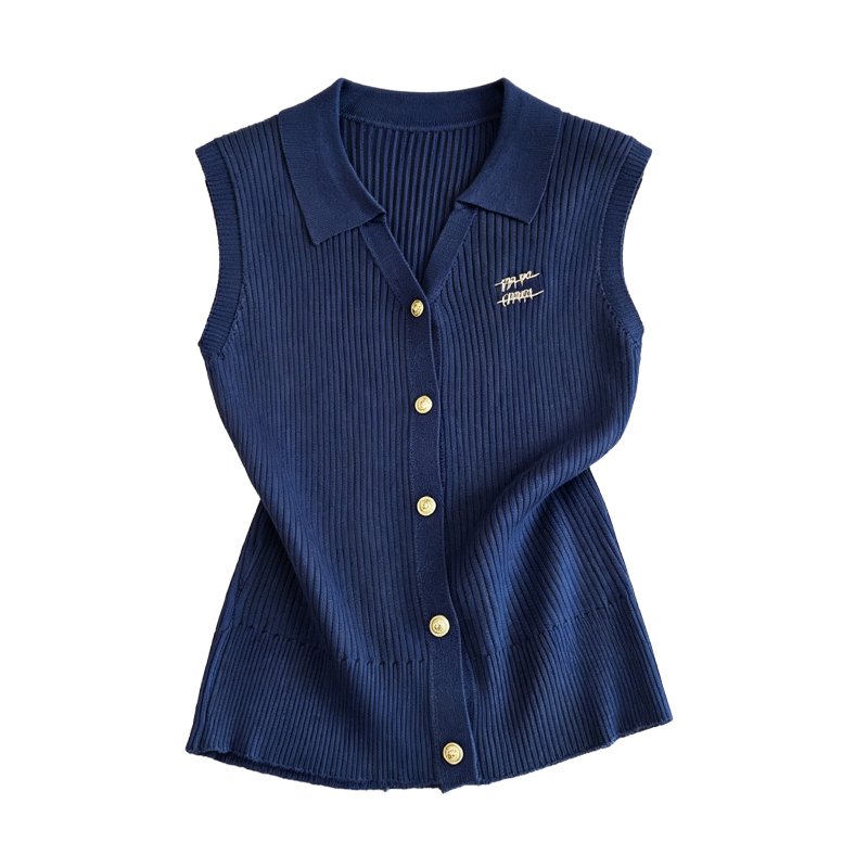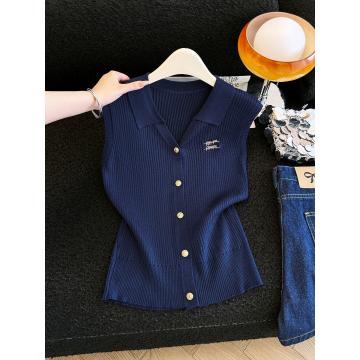 BY18727# 韩版polo领冰丝无袖针织开衫女夏季新款修身显瘦百搭马甲上衣 服裝批發女裝批發服飾貨源