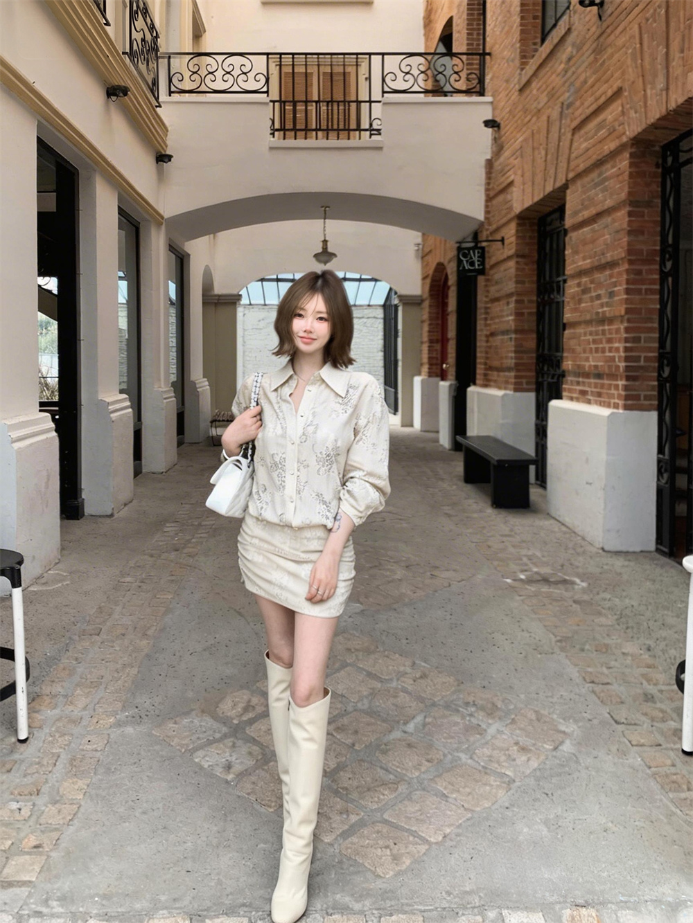 杏色连衣裙
