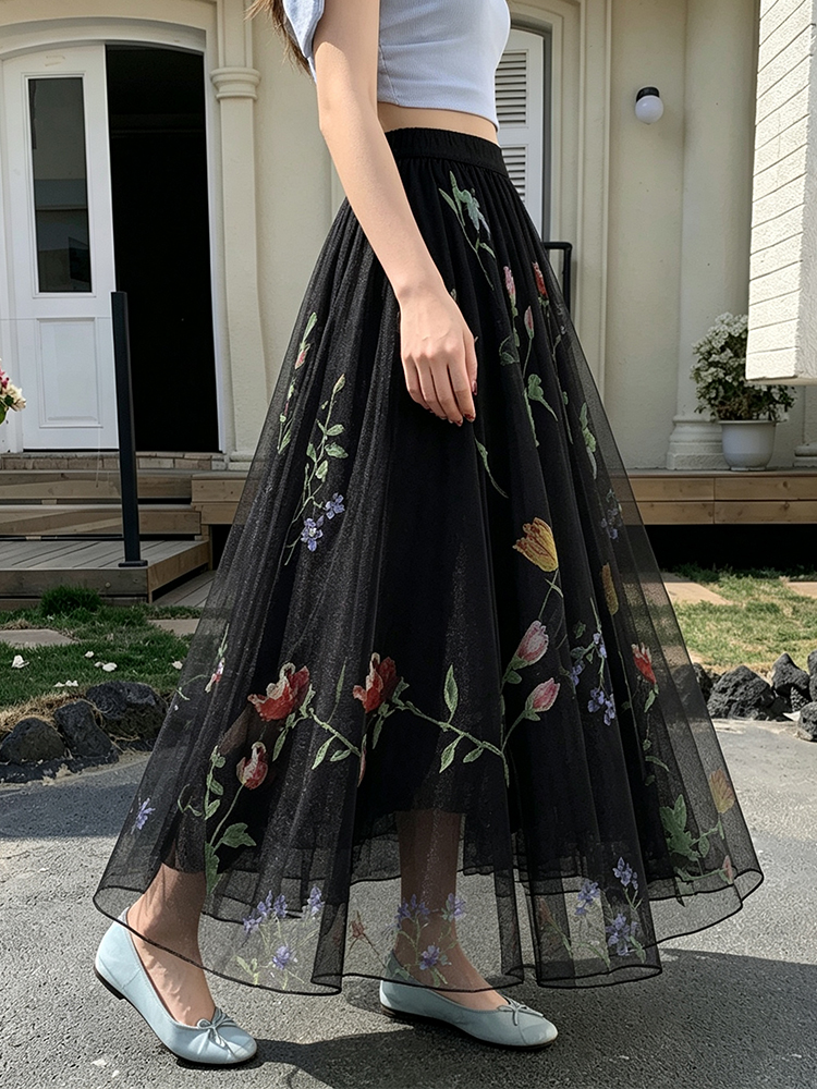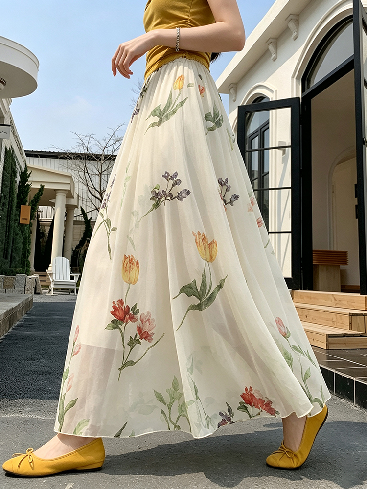 Home > 短裤、半身裙 > BY18769# 小清新碎花半身裙春夏新款中长款高腰减龄网纱A字百褶裙 服裝批發女裝批發服飾貨源
