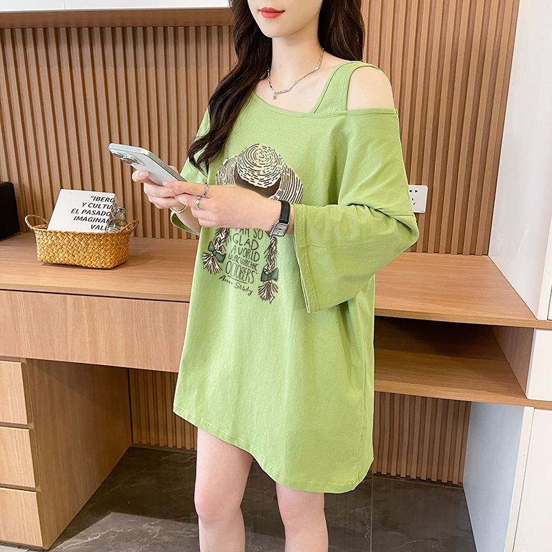 BY18770# 抖音质量/纯棉/设计感宽松露肩时尚短袖T 服裝批發女裝批發服飾貨源