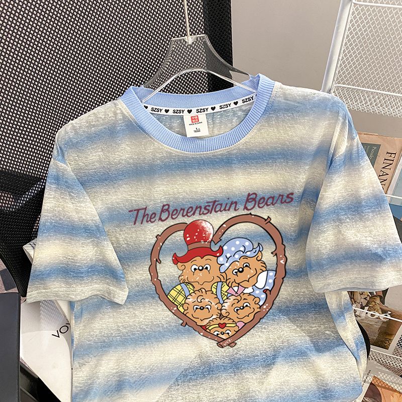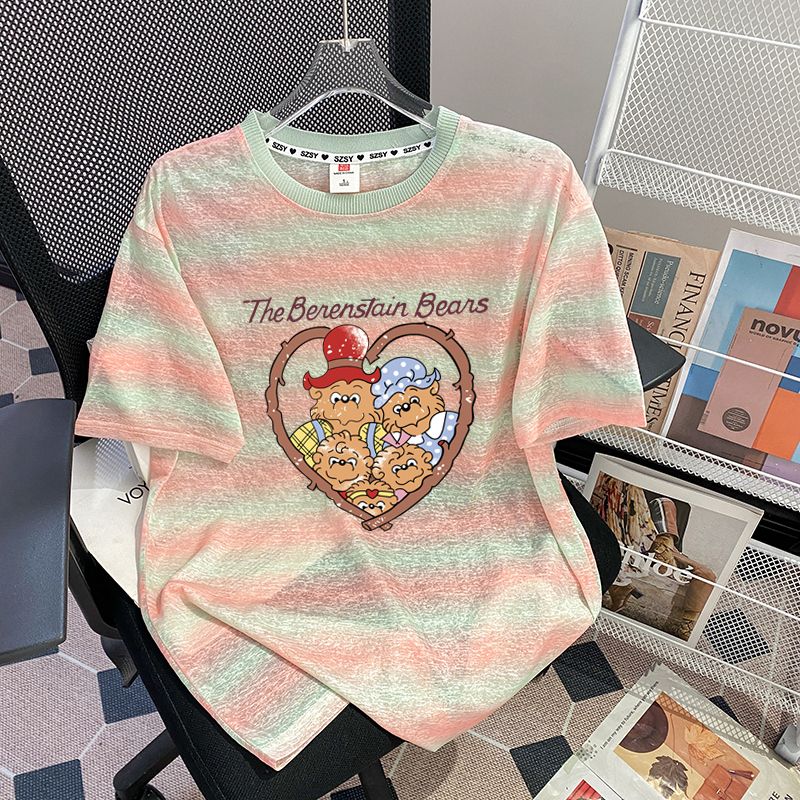 FA35461# 原版质量+罗纹领+包边拉肩特大码300斤条纹短袖t恤女 服裝批發女裝批發服飾貨源