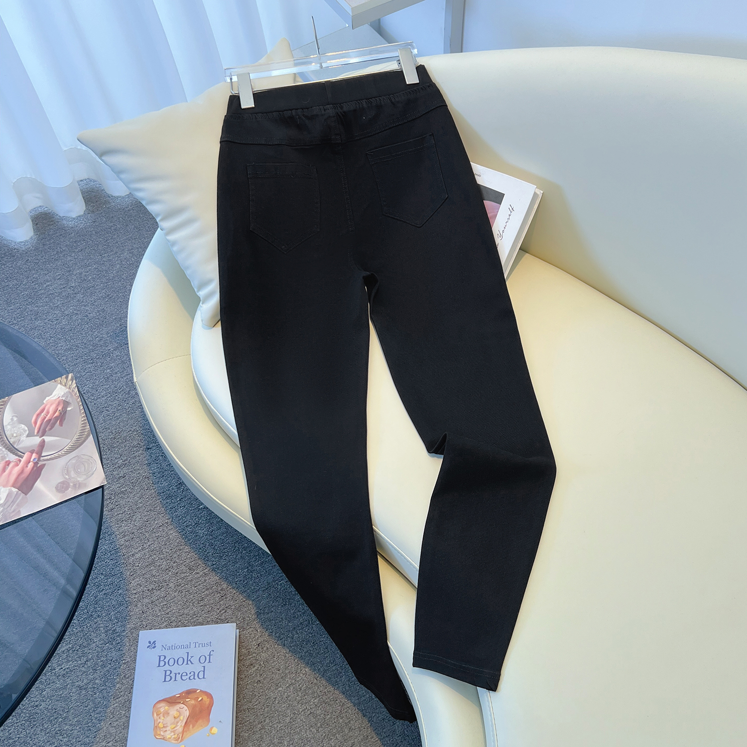 FA42834# 秋新款大码松紧腰修身小脚女长裤黑色胖MM显收弹力外穿休闲裤 服裝批發女裝批發服飾貨源