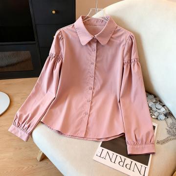 FA43333# 衬衫女长袖春秋新款韩版磨毛绒面显瘦内搭衬衣粉色上衣 服裝批發女裝批發服飾貨源